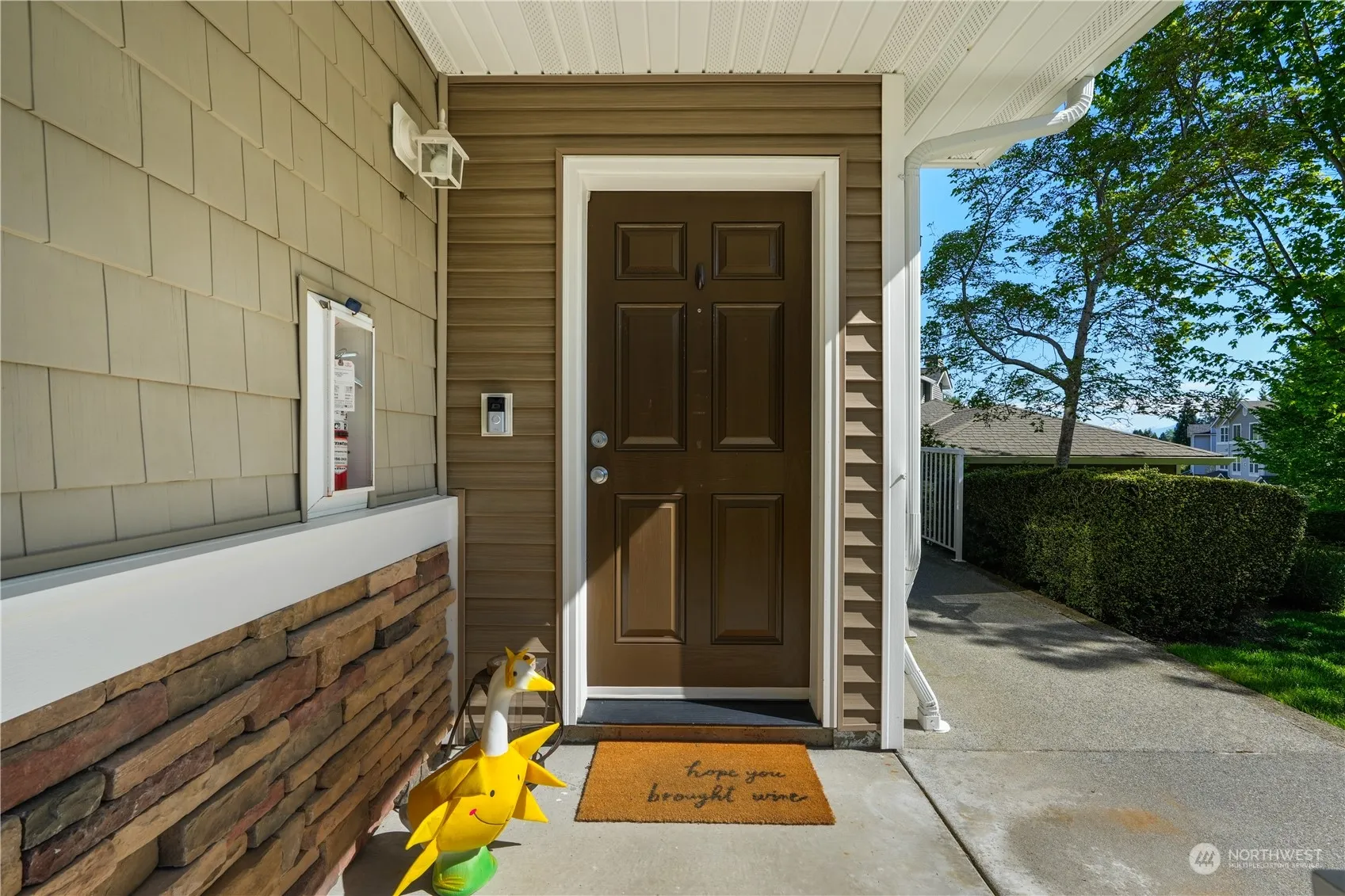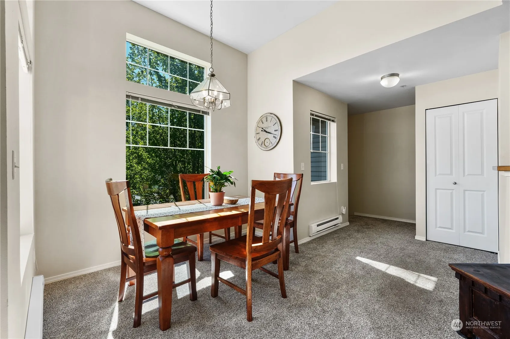 Top floor townhome in Magnolia at Highlands! Enjoy an incredibly bright and open living area with massive windows and vaulted ceilings! Cozy up to the gas fireplace on those cold days and enjoy views from the deck in the Summer months. Spacious kitchen with newer stainless steel appliances. 2 large bedrooms including a primary suite with full bath and walk-in closet. Full size laundry in a hallway closet. Attached 1 car garage with plenty of room for storage! Great community with parks, trails and sport court. Check it out today!