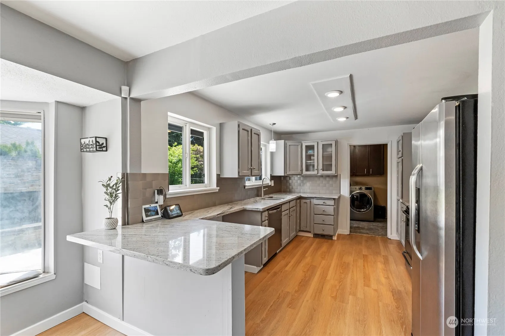 This home is a wonderful find! With its versatile layout, spacious yard, and attractive features, it offers both comfort and potential for personalization. The tastefully updated kitchen with stainless appliances and the unique fireplace that offers both gas and wood burning options are standout features. The main floor layout with 3 bedrooms and 2 full baths provides convenience, while the option to configure the upstairs bonus room into multiple bedrooms offers flexibility to suit different needs.The outdoor space with a large deck featuring a hot tub, a beautifully designed patio with a fireplace, and ample room for outdoor activities. The addition of RV parking and a large shed for storage adds practicality to the property.