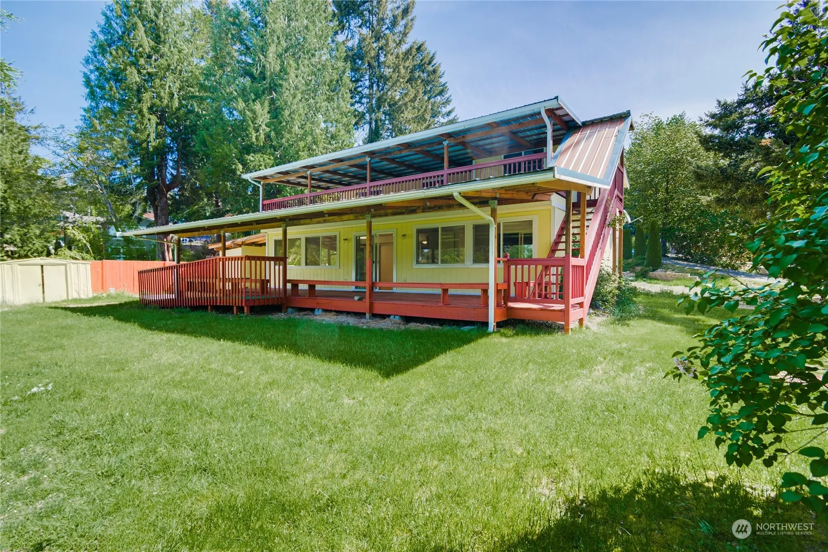 Motivated seller—submit your offer today! Discover waterfront living in Ponderosa Lake Estates! This 5-bedroom home offers private lake access steps from your backyard. With 2 bonus rooms, 2 baths, and 2 kitchens, it’s perfect for dual living. Enjoy lake views from 2 large decks, great for gatherings or peaceful moments. Lower level with separate access, potential for AFH conversion. Minutes from major retailers and amenities. Upgrades include a new septic tank, roof, and flooring. Relax in the sauna!