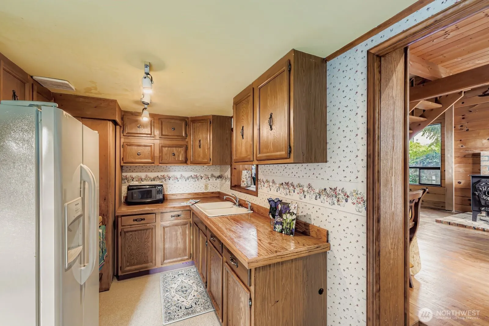 RARE OPPORTUNITY! Charming house at a GREAT PRICE!! DISCOVER this 2-bedroom 1-bath house nestled away among mature vegetation in a quiet neighborhood. The A-framed chalet-style addition features an upper-story loft with access to roomy storage. The garage allows for one vehicle or workspace. There is plenty of parking in front of the house. The treed backyard gives you privacy and space to entertain. The living room bay window with special prism glass adds artistic charm. A pellet stove gives extra heat. Enjoy the decorative marble floor in the bathroom. The knotty-pine walls give a homey, comfortable feel. By the way, light rail is only a 10-minute walk and grocery shopping is nearby with no need to make a trek on the freeway.