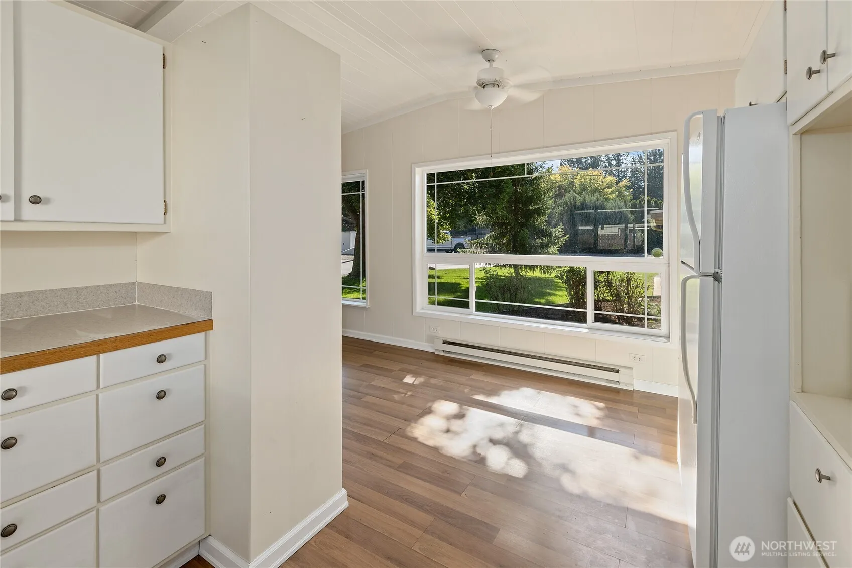 This charming Lundstrum home, built in 1950, offers a blend of mid-century modern allure and functional updates and the bright, open spaces accentuate its airy feel. Spanning 1,636 sq. ft., the property features a welcoming 2-bedroom, 1-bath layout, perfect for comfortable living. Plus a versatile studio with a 3/4 bath elevates the appeal, making it a standout option for those seeking extra space for creative projects or guest accommodations. Sitting on a generous corner lot, this property boasts an expansive covered patio and a spacious finished storage building. Large windows, inviting natural light emphasizes a seamless indoor-outdoor connection.