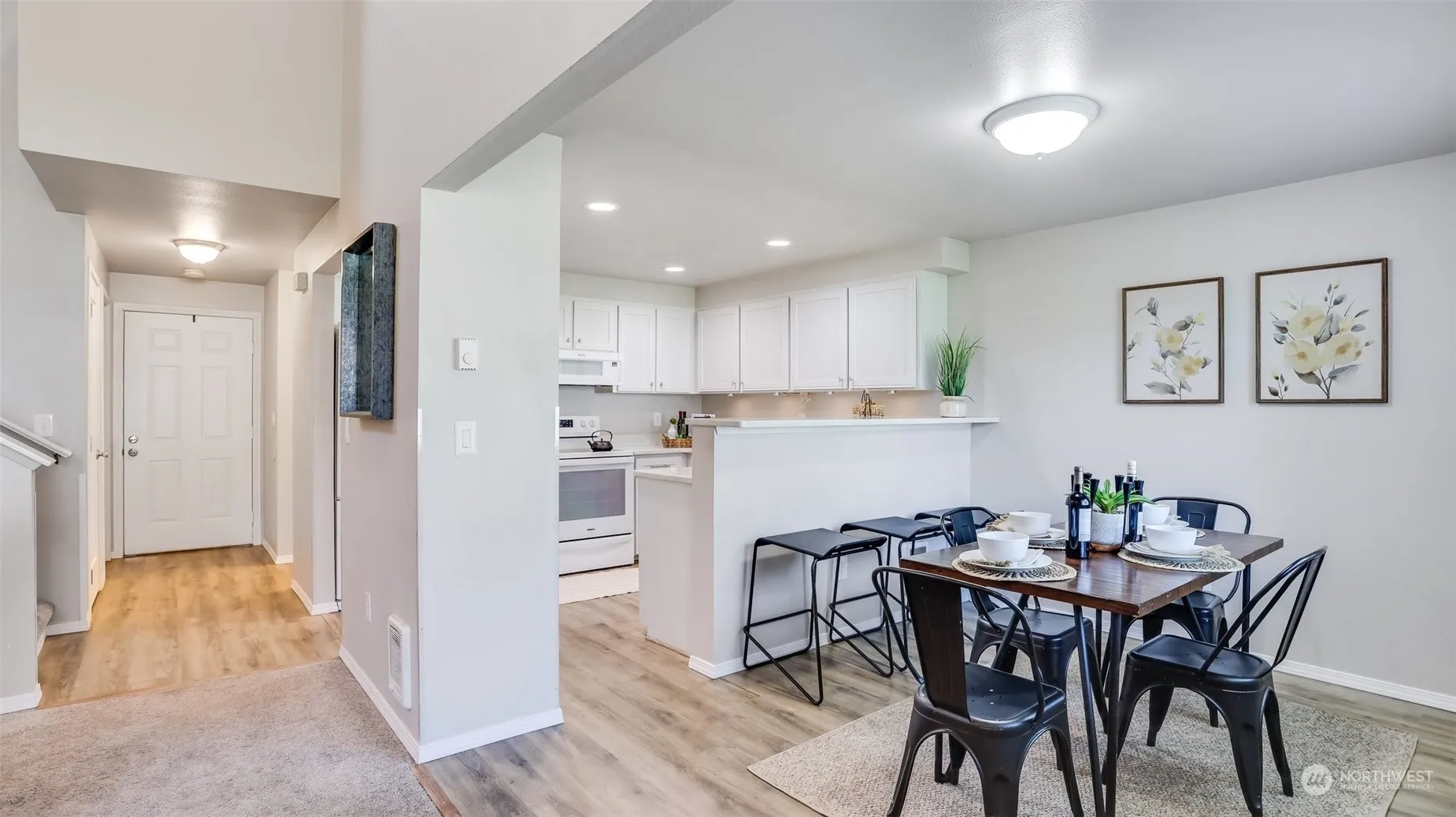 Welcome to this darling 2-story condo with 3 bedrooms; one on the main floor, perfect for office or guest bedroom. Open concept floor plan, great for entertaining! Main floor also features washer & dryer, 3/4 bath with newer vanity, kitchen, spacious dining room & living room with vaulted ceilings. Kitchen has beautiful quartz counters, modern vinyl plank flooring, under cabinet lighting, cabinet pull outs, pantry & breakfast bar seating. Upstairs you will find two more bedrooms with jack & jill style bathroom featuring newer double sink vanity, shower/tub combo and storage closet. Primary bedroom is large and has two closets! Enjoy easy access to freeways, local shops & dining!