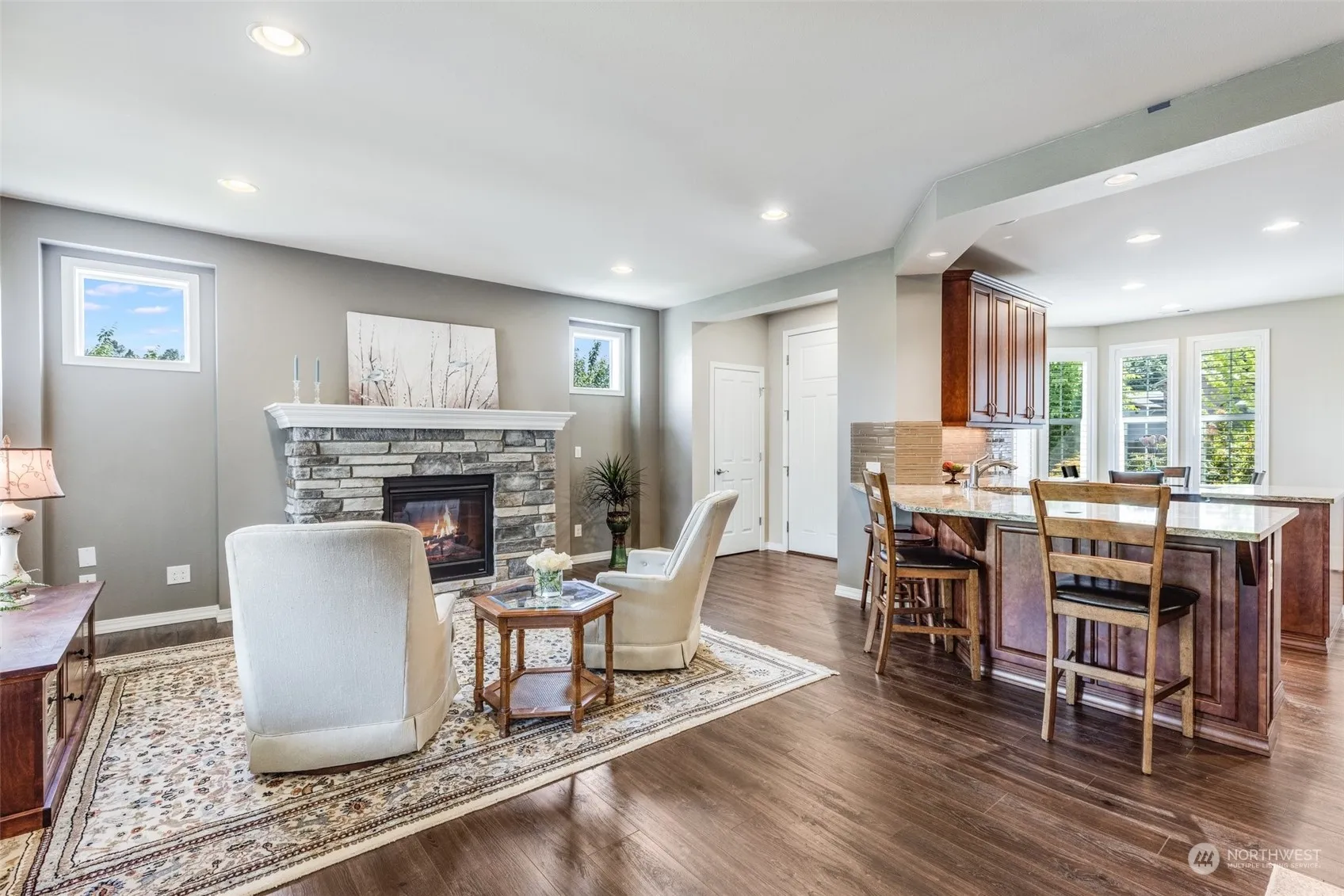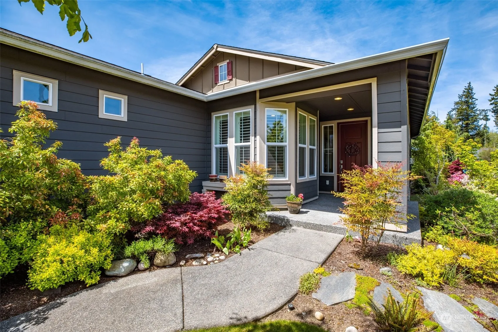 Welcome to the highly sought after 55+ resort style living in the Trilogy neighborhood of Tehaleh! Situated on a large coveted corner lot, you’ll be greeted by an open-concept floor plan with abundant natural light, high ceilings, and convenient single level living. The gourmet kitchen is a chef’s delight, boasting quartz countertops, a wine cooler and brand new stainless steel appliances. In addition to 1,800 acres of parks and walking trails, residents have access to the prestigious Seven Summits Lodge, which offers a range of amenities including a state-of-the-art fitness center, an indoor pool, a golf simulator, pickle ball courts and various social and recreational activities as well as a beautiful bar and fine dining restaurant.