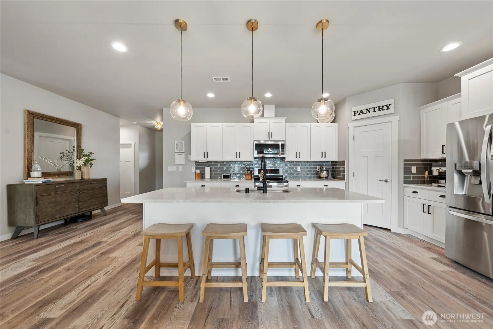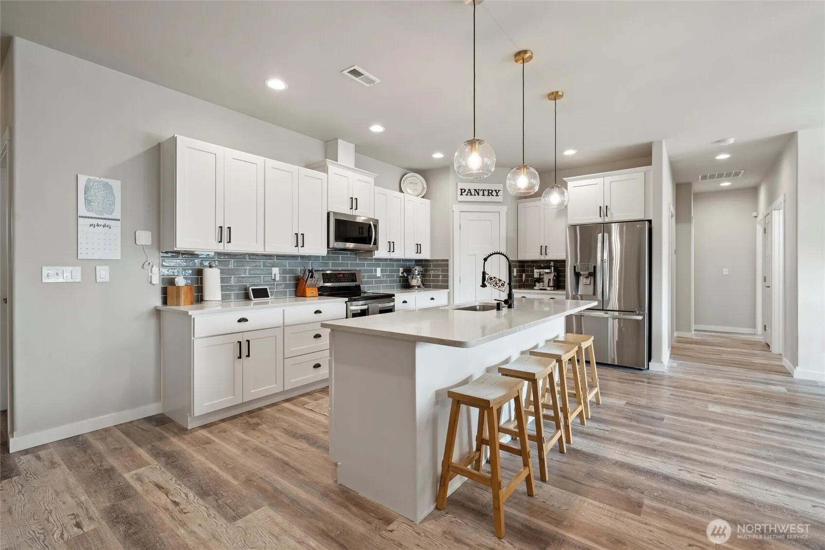 A beautifully designed 5 bed, 2 bath home that feels like new! Inside, you’ll find quartz countertops, LVP flooring throughout, and a cozy fireplace. The gourmet kitchen features stainless steel appliances, a walk-in pantry, and plenty of counter space, perfect for gatherings. The primary suite is a true retreat, complete with a walk-in tiled shower, walk-in closet, soaking tub, and dual vanity. A large laundry room with sink, counters, and cabinets makes everyday living easy. Additional highlights include a back patio with fire pit, a converted bonus room in the garage with its own mini-split system. Located in a vibrant community offering a private boat launch, park, playground, and walking trails, this home has it all, inside and out.