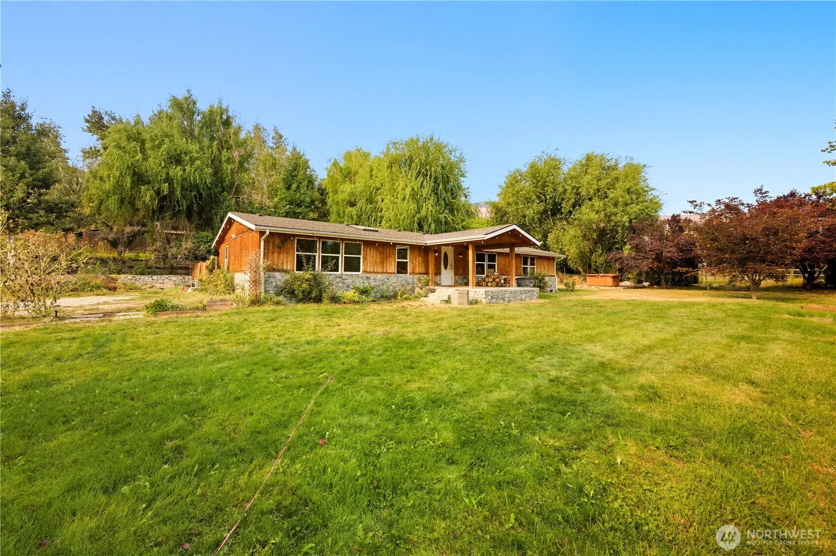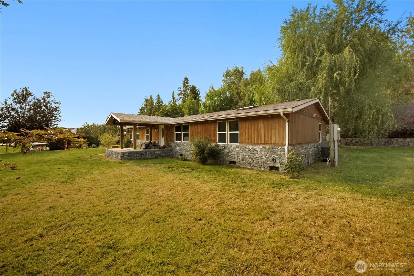Expansive 2.76 acres of Manson’s finest private plot of land–offering mature trees & a diverse landscape providing the utmost seclusion, at 2810 Manson Blvd. The property features a 4-bedroom/2.75-bath, 1,728-square-foot, 1999 custom-manufactured home with a rock accent, situated on a spacious lawn, & complemented by custom rock retaining walls, miscellaneous outbuildings, including a chicken coop, a carport-style versatile shop, and a 1-bedroom/1-bath ADU. Above the ADU, there is an RV hook-up and a dirt road that accesses the terraced landscape, capturing the uplake and 4th of July mountain views. Endless potential, with endless usable space, offering Lake Chelan Reclamation Irrigation, domestic water, septic, & chelan County PUD power.