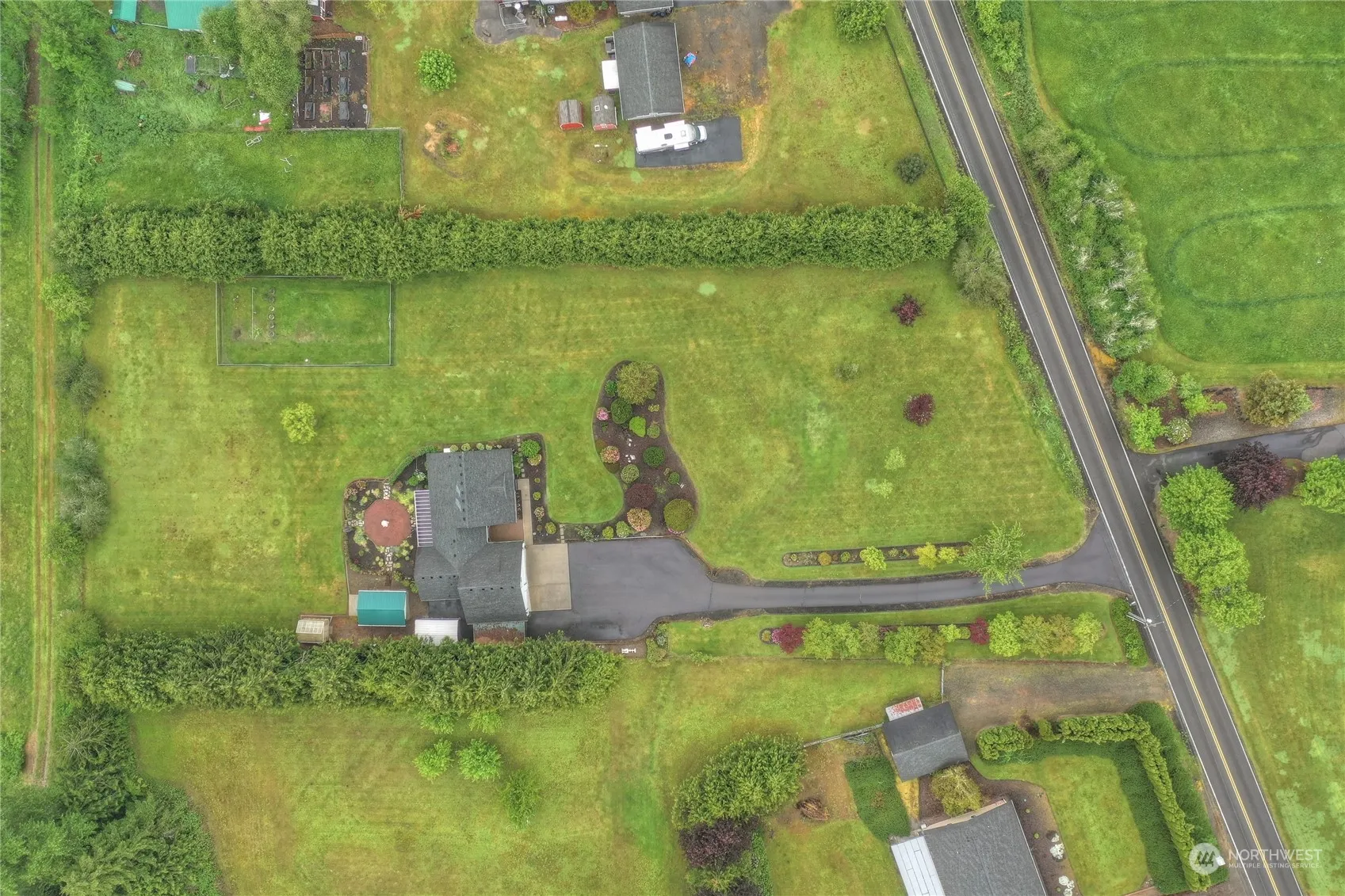 Welcome to your dream home! This stunning home offers the perfect blend of comfort and style. Situated on just under 2 acres. Meticulously landscaped yard and garden area create a picturesque setting that welcomes you with open arms. Home features 1,930+/-sqft, 3 Bedroom, 2 full BA, large 3-car garage, bonus rm above garage, vaulted open great rm w/lots of light, Kitchen is equipped w/high end appliances & large eating bar, Split bedroom floor plan, 5 piece primary w/large walk in closet w/built-ins, power Sunsetter shades on back windows, covered front & back porches, 10×20 Storage shed w/garage door, Fenced garden area & greenhouse, full yard irrigation system, RV power outlet, lighted paved driveway & plenty of room to park your RV.
