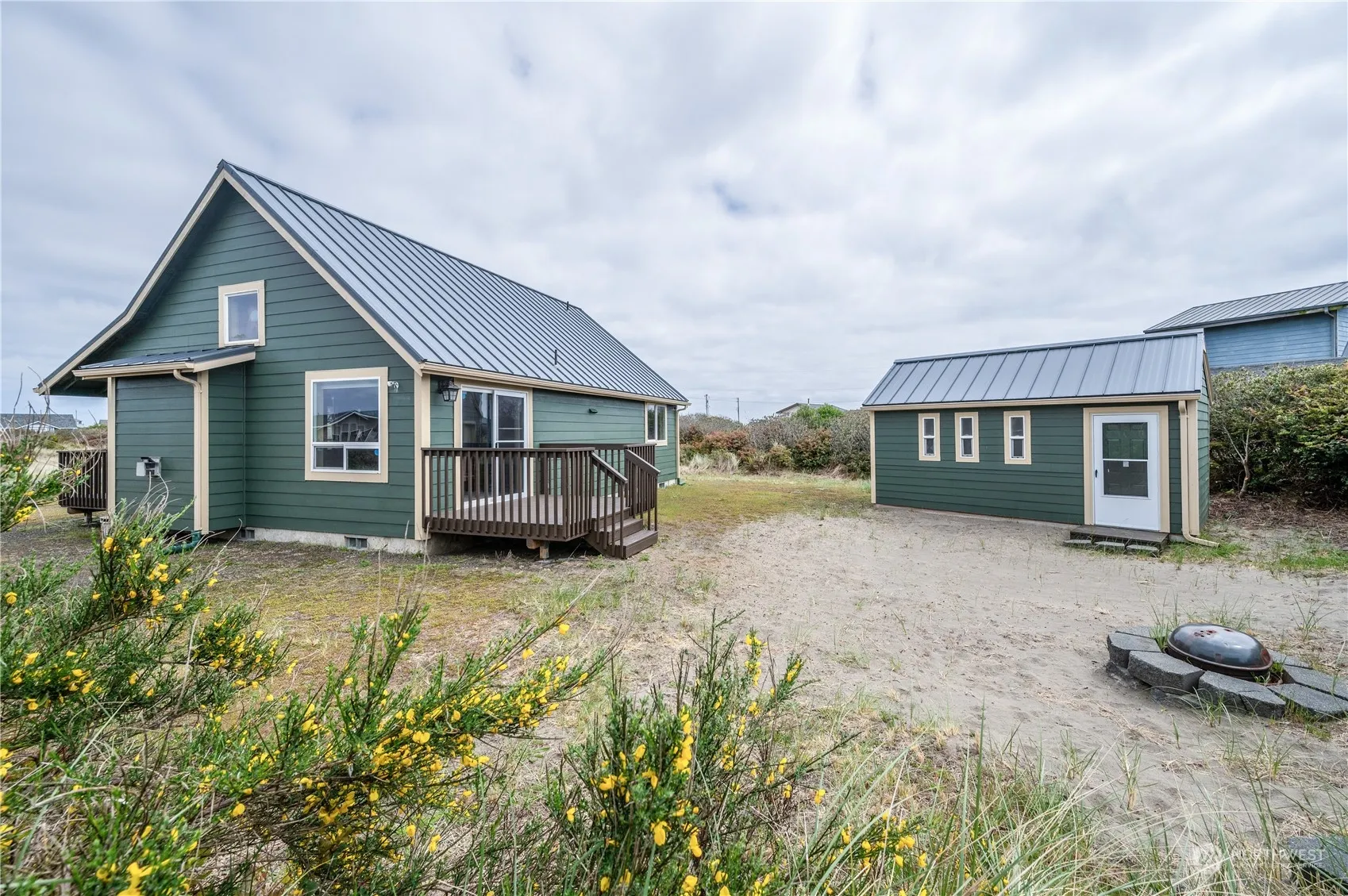 Hear waves crash & watch expansive sunsets at this blissful coastal beach house, only 1 block to the ocean beach path. Enjoy quality construction with upgrades like granite countertops, a propane fireplace, and alder cabinets. Relax in the spacious Great room or on the large covered deck, perfect for sunset views. Additional features include a 10×18 shed with a roll-up door for your toys and motorbikes, a low-maintenance yard, and a fire pit for cozy evenings. With a metal roof, high-end blinds, blackout blinds in both bedrooms and security system included, this fully furnished retreat ensures coastal living at its finest. Access to the community club’s pools and more completes the dream lifestyle! Includes 1-year home warranty with AHS.