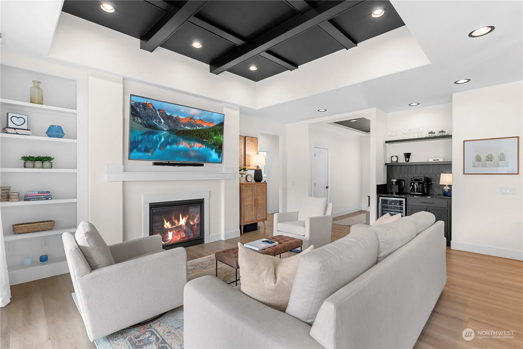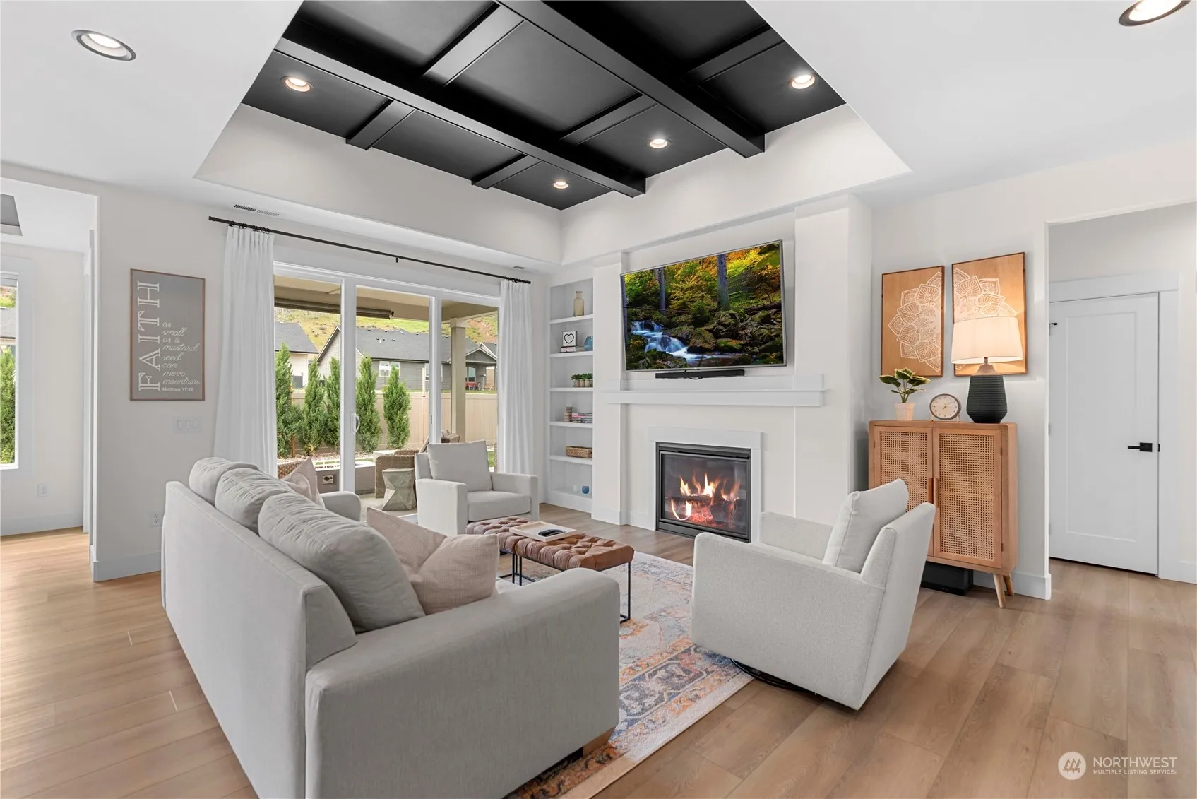 Welcome home to this modern, light & bright 4 bed, 1.75 bath + office/den (or 5th bedroom) gem that boasts sleek architecture, expansive windows, and bold accents. Built by the prestige Roberts Construction, the open-concept living space features a gourmet kitchen, cozy fireplace, quality built ins and seamless indoor-outdoor flow to the rear covered patio. Main floor master suite with attached bath & walk in closet, custom window treatments, 3 car garage and easy maintenance landscaping, abundant natural light.. this home offers the perfect blend of style and functionality. Don’t miss the community parks/pickle ball courts that are managed by HOA. Combination of size, location and quality – Move in Ready!