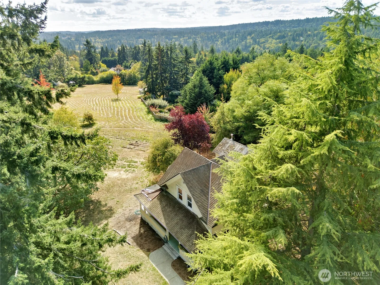 This wonderful sunny and classic farm house has extraordinary charm. Perched at the top of Windsong Loop, this home sits adjacent to a 5-acre open meadow which is neighborhood common space and creates a wonderful buffer. 3 bedrooms and full bath on the second floor. Country kitchen and large living room with wall of south facing windows and full bath on the main floor. Original wood floors and leaded stained glass complete the picture perfect Heritage Bainbridge Farmhouse. Close to Rolling Bay with it’s shops and cafes, Ted Olsen Nature Preserve, schools and highway access. This is an excellent opportunity for sweat equity or an investment potential. Bring your vision and energy to this special property.