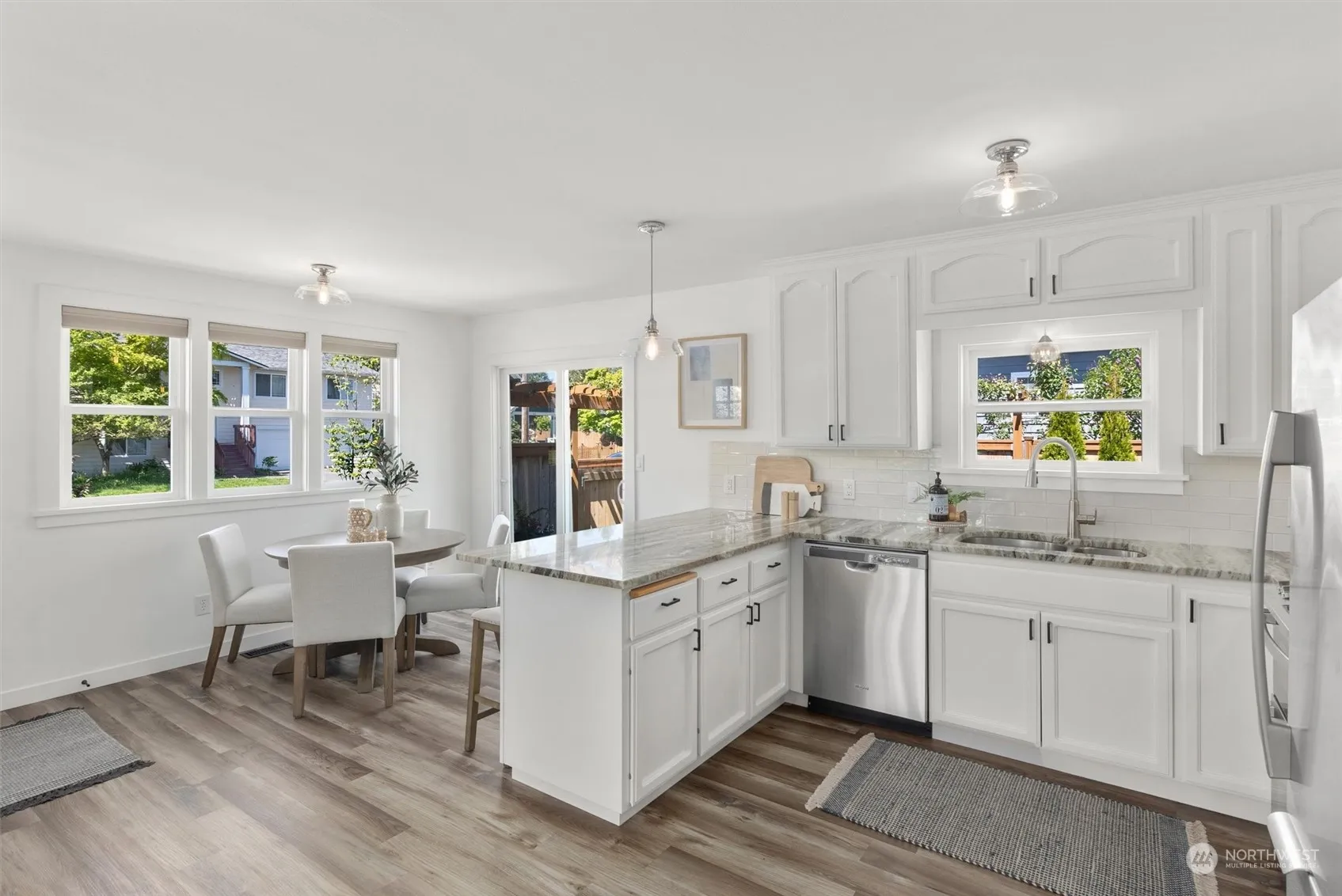 Step inside this charming and sunny 3 bedroom rambler in the heart of Monroe. Beautiful front porch welcomes you to this thoughtfully updated home. Open layout w/ large primary suite featuring easy backyard access. The level lot has been beautifully landscaped w/ a fully fenced backyard. Separate entrance to the ADU in the back allows for plenty of privacy. ADU added in 2021, fully permitted with mini split/AC, 336 SF. Features a bedroom, kitchen, full bathroom, and a living room. 3 blocks to Main Street, coffee, shopping, and more. Walking distance to elementary and middle school. Minutes to downtown Monroe & 522. New roof, windows, and siding in 2021, potential rental income opportunity with the ADU. 2 parking spaces in back plus street.
