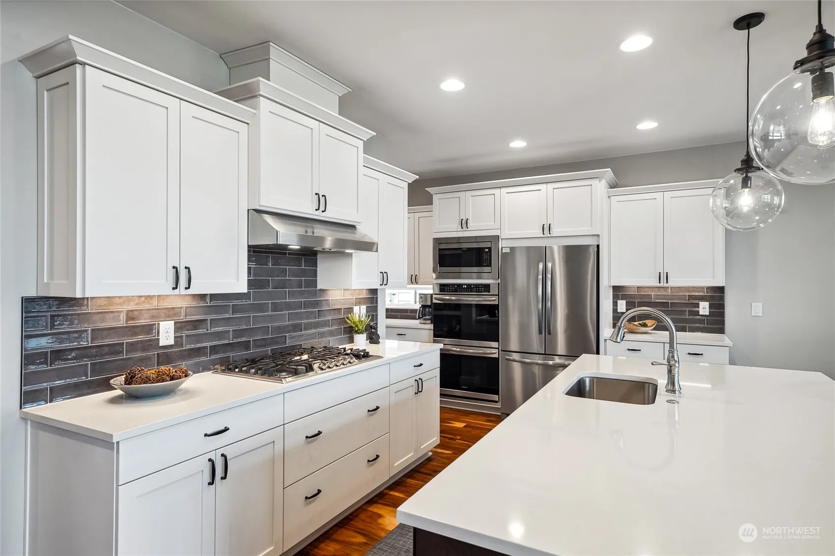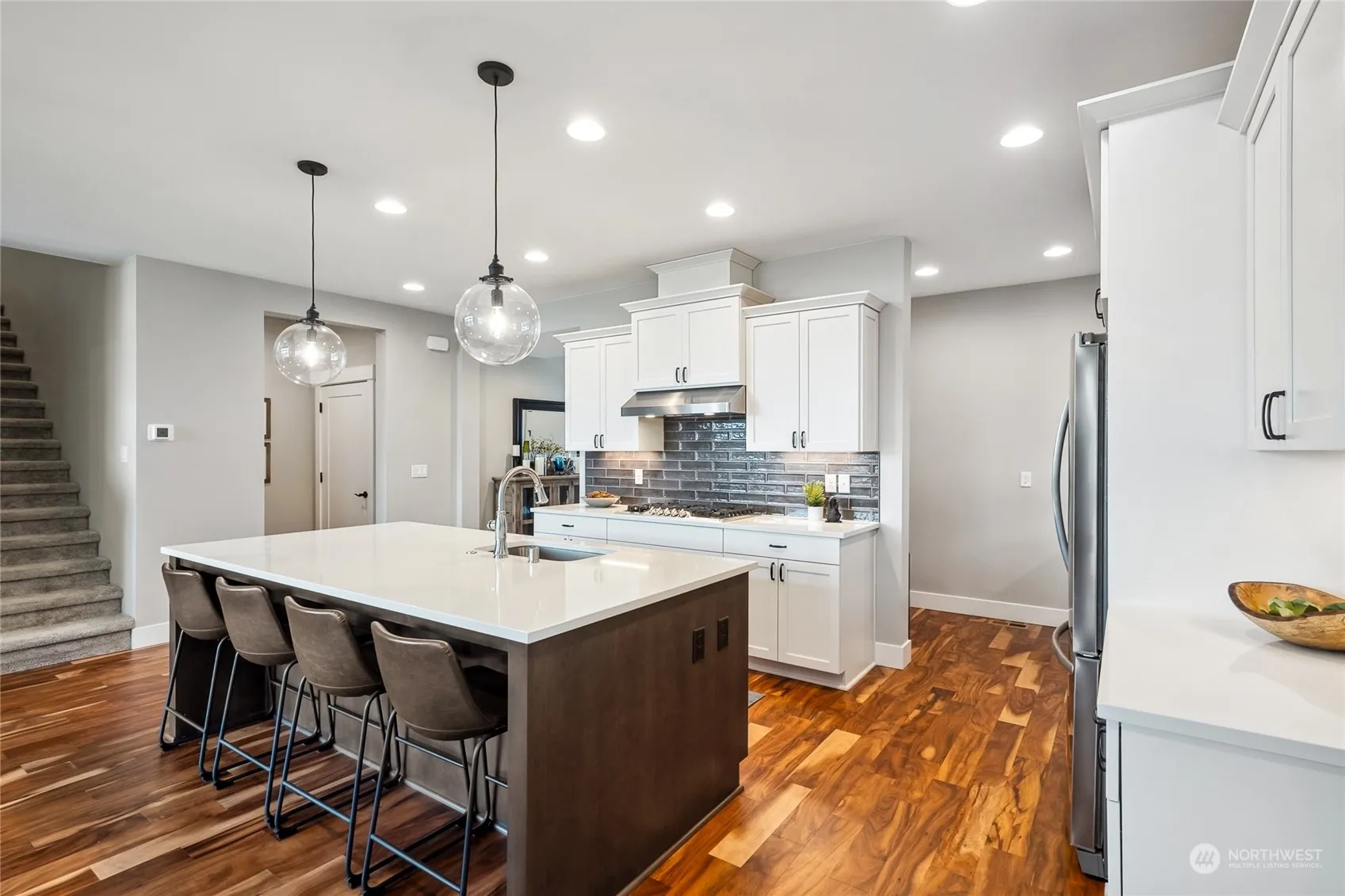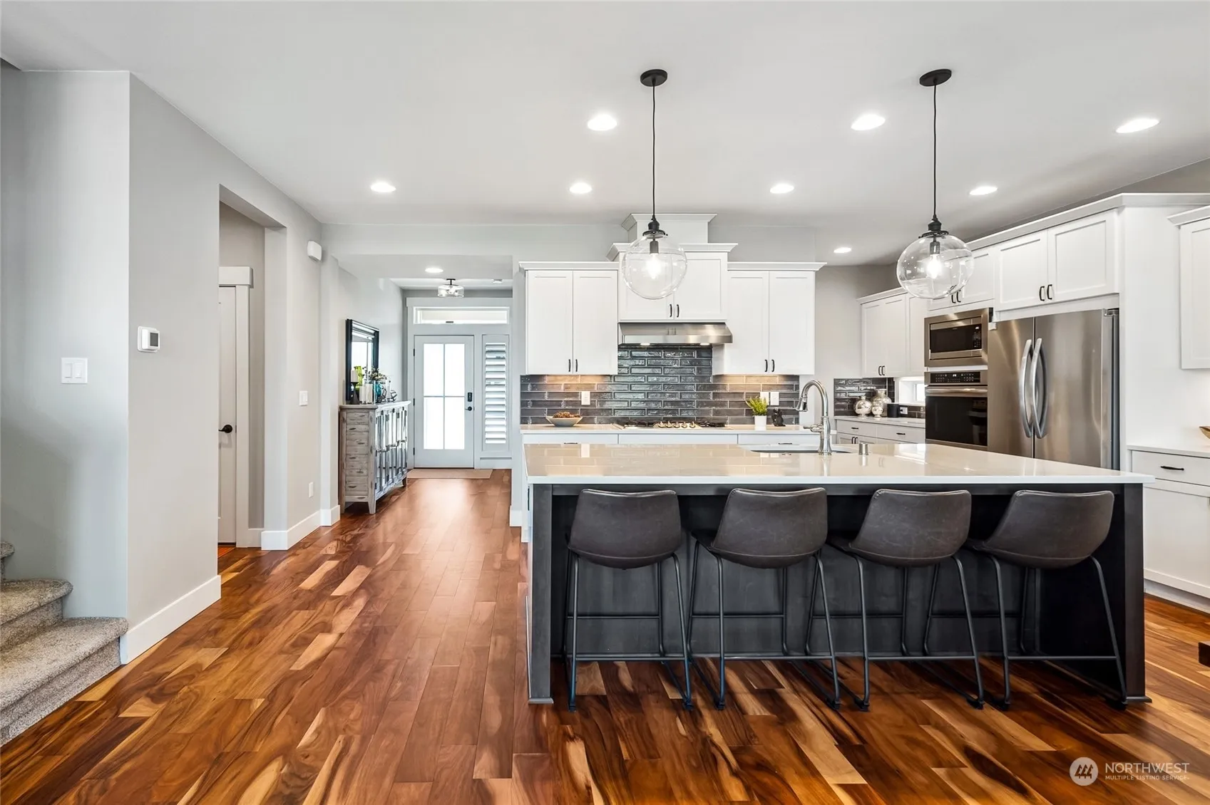 Exquisite residence situated on a beautifully manicured lot in the desirable, newer community of Aster Point. Featuring meticulous styling & upgraded finishes, the luminous interior includes extensive Acacia timber flooring, lofty ceilings, A/C, a spacious media/playroom, & home office. The gorgeous open-concept kitchen showcases an oversized island, custom white cabinetry, quartz countertops, coffee bar, walk-in pantry, & sleek stainless appl. The serene main floor primary bdrm comes complete with a barn door, grand walk-in wardrobe, private washer/dryer area, & a luxurious en-suite w/ soaking tub & fully tiled shower. A large sliding door opens onto a lovely covered outdoor living area, perfect for extended living & alfresco entertaining.