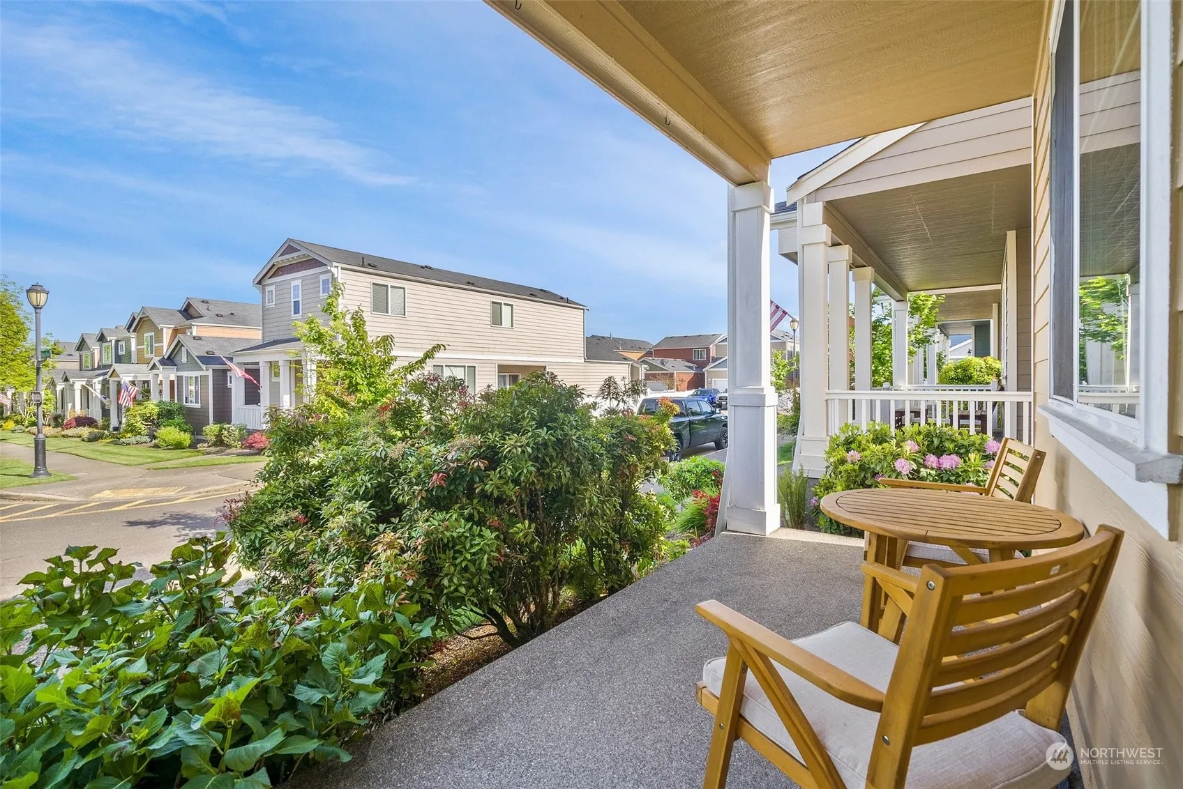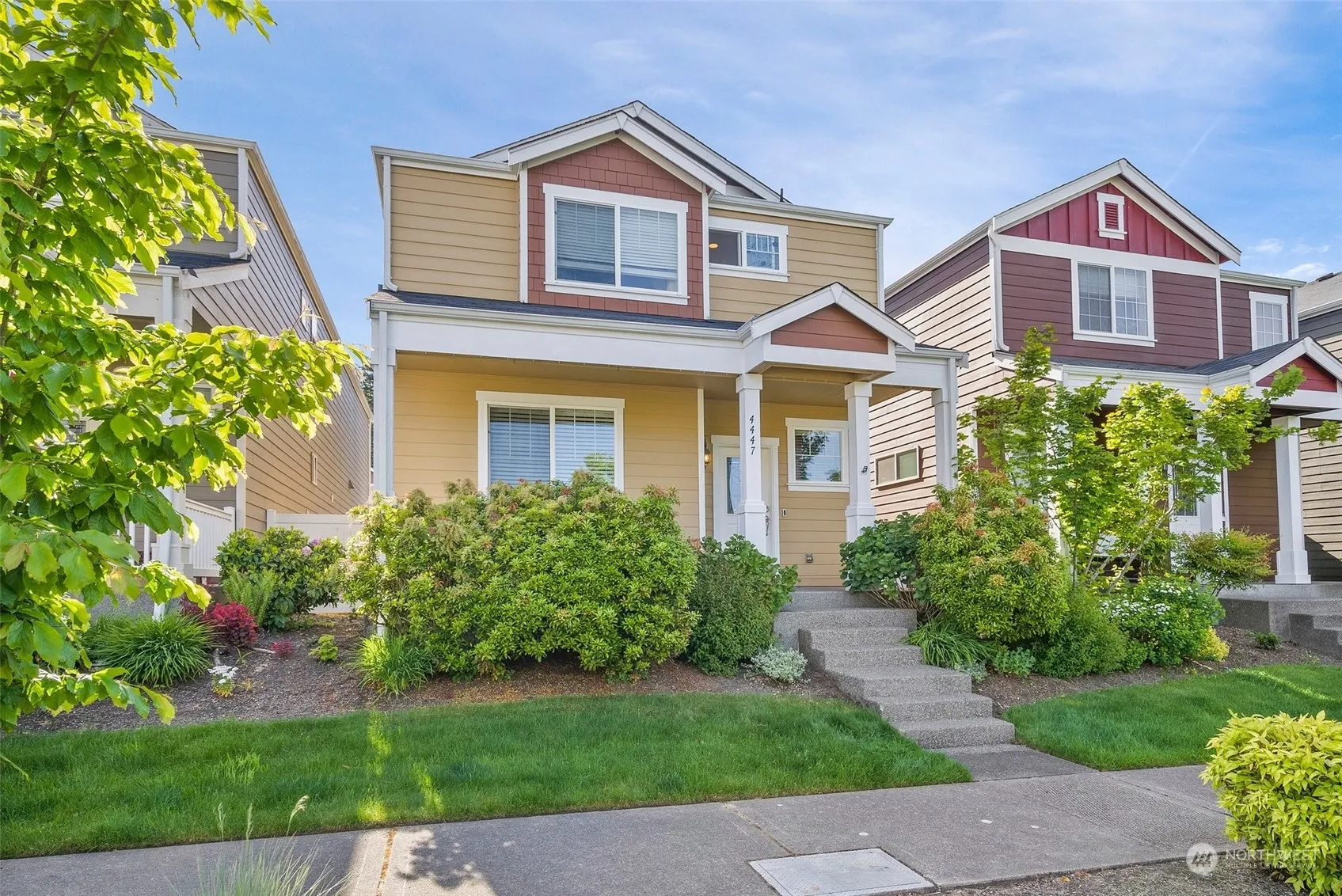 Beautiful home with many upgrades throughout including A/C! 3 bdr, 2.5 BA, home features amazing real hardwood floors with large kitchen which has gorgeous granite counters, SS appliances along with plenty of cabinets for all of your storage needs. Kitchen also opens to the great room for entertaining guests. Main floor also features den/office. Upstairs has bonus room/loft and large master bedroom has huge walk-in closet with 5-piece master bath. Home is right across from the beautiful community park and only steps away from the trail to the community beach. Nearby JBLM & shopping.