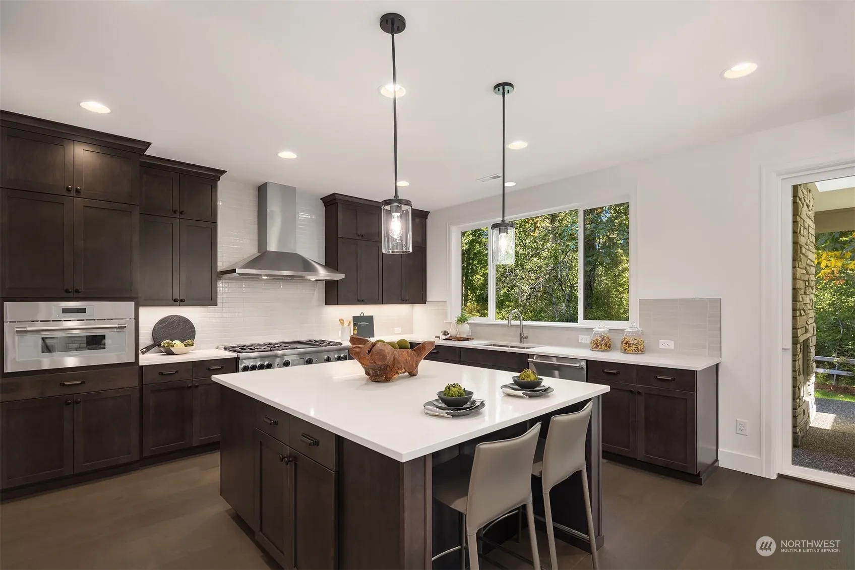 The last new home from Murray Franklyn in the sought after Reserve at Windtree neighborhood in Newcastle. Completed and ready to move into today! This is the extremely private homesite number 5 backing to beautifully treed open space. The popular Steele floorplan. Modern layout featuring 4 bedrooms and 4 bathrooms including a main level 5th bedroom/den/office. Upstairs offers including primary suite with dual closets. Spacious third story recreation room with bathroom. Stunning custom design and high end finishes from luxury homebuilder including high ceilings, expansive windows and air conditioning. Large Covered Patio with fireplace. Fabulous location at the end of very quiet street. Don’t miss this rare opportunity!