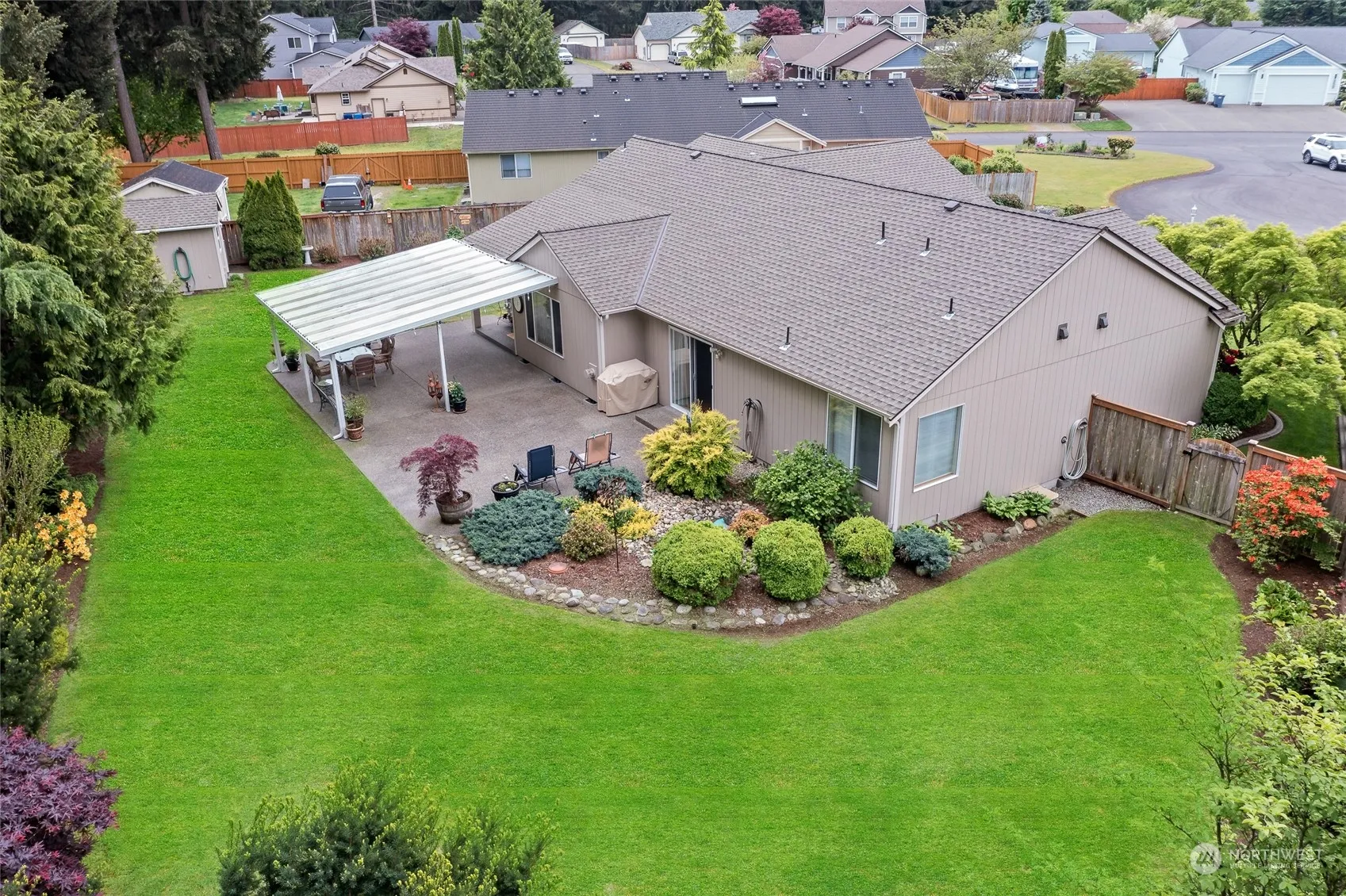 Step into serenity w/ this meticulously maintained rambler, tucked away on a tranquil cul-de-sac. Boasting 3 beds, including a luxurious primary w/walk-in closet & private 5-piece bath, this home exudes comfort & elegance. Outside, discover a breathtaking backyard oasis, complete w/ secret garden, a sprawling covered patio & meticulously manicured landscaping. The charming kitchen & its inviting eat-in area & sliding door leading to your own private paradise, is perfect for enjoying morning coffee or entertaining guests. Hardwood floors, high ceilings, & abundant natural light enhance the allure of this enchanting retreat. Plus enjoy central AC & automatic sprinklers, ensuring year-round comfort & convenience. Pride in ownership throughout!