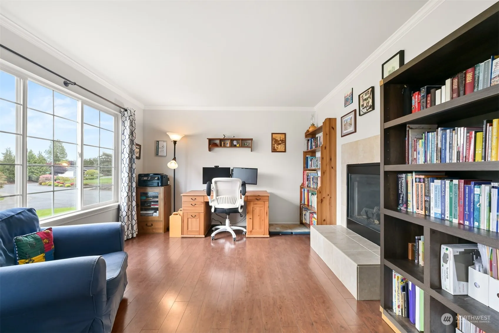 Welcome to your new home in the coveted Bay Hill neighborhood! This 2-story home boasts 3 bdrms/2.5 baths, & a seamless layout designed for comfortable living. Entertain guests in style w/both formal living & dining areas, or gather in the sunlit kitchen featuring ample pantry space & a convenient eating bar. Adjoining the kitchen is a cozy family room, complete w/a shared see thru gas fireplace.Head upstairs to discover a versatile loft area, bathed in natural light & offering mountain views. The spacious primary bedroom w/an en-suite bathroom including double sinks, a step-in shower, & expansive walk in closet.2 addtl bdrms down the hallway share a full bath. You will also appreciate the generous 2-car garage, storage racks & workspace.