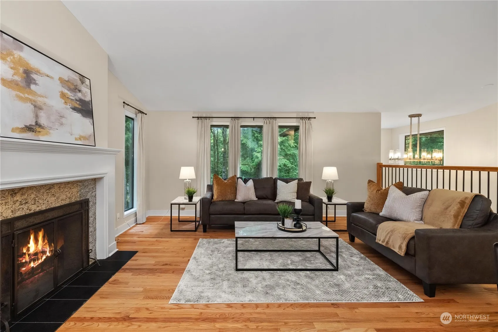 Welcome to Mirrormont. This expansive home on over an acre lot offers main floor & lower level access for versatile living options. Main floor greets you w/high ceilings, updated kitchen, & striking living room w/fireplace. Prepare to be impressed by the primary suites spacious layout, custom closet, luxurious en suite, & private backyard access. Two sizable guest beds & a full bath complete the main level, ensuring comfort & convenience. Descend to the lower level, ideal for Airbnb or multigenerational options, offering family room w/wood stove, two additional beds, office, & a 3/4 bath. Outside, immerse yourself in the serene wooded surroundings w/wrap-around Trex decking, a hot tub, & multiple fenced areas. Issaquah Schools.