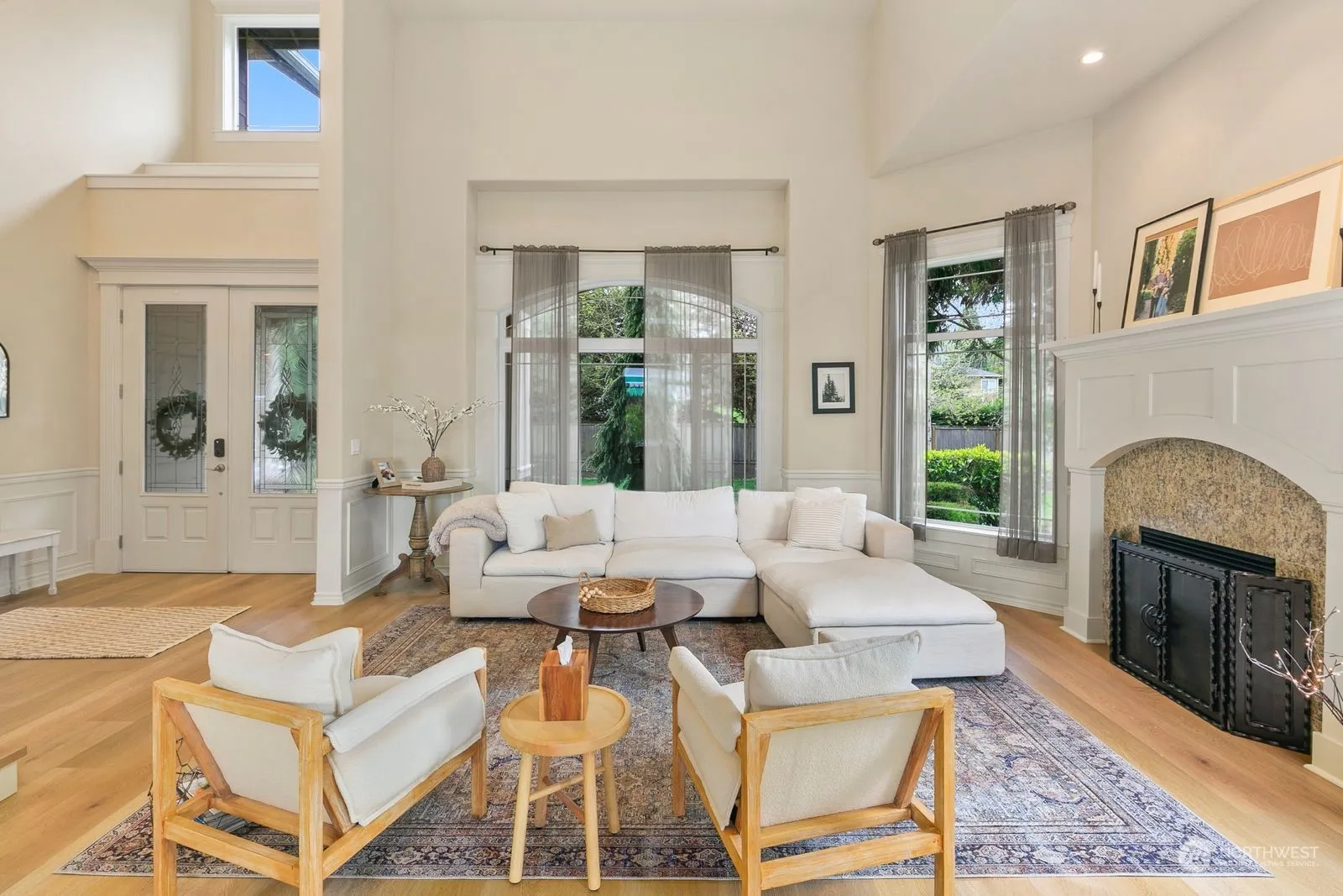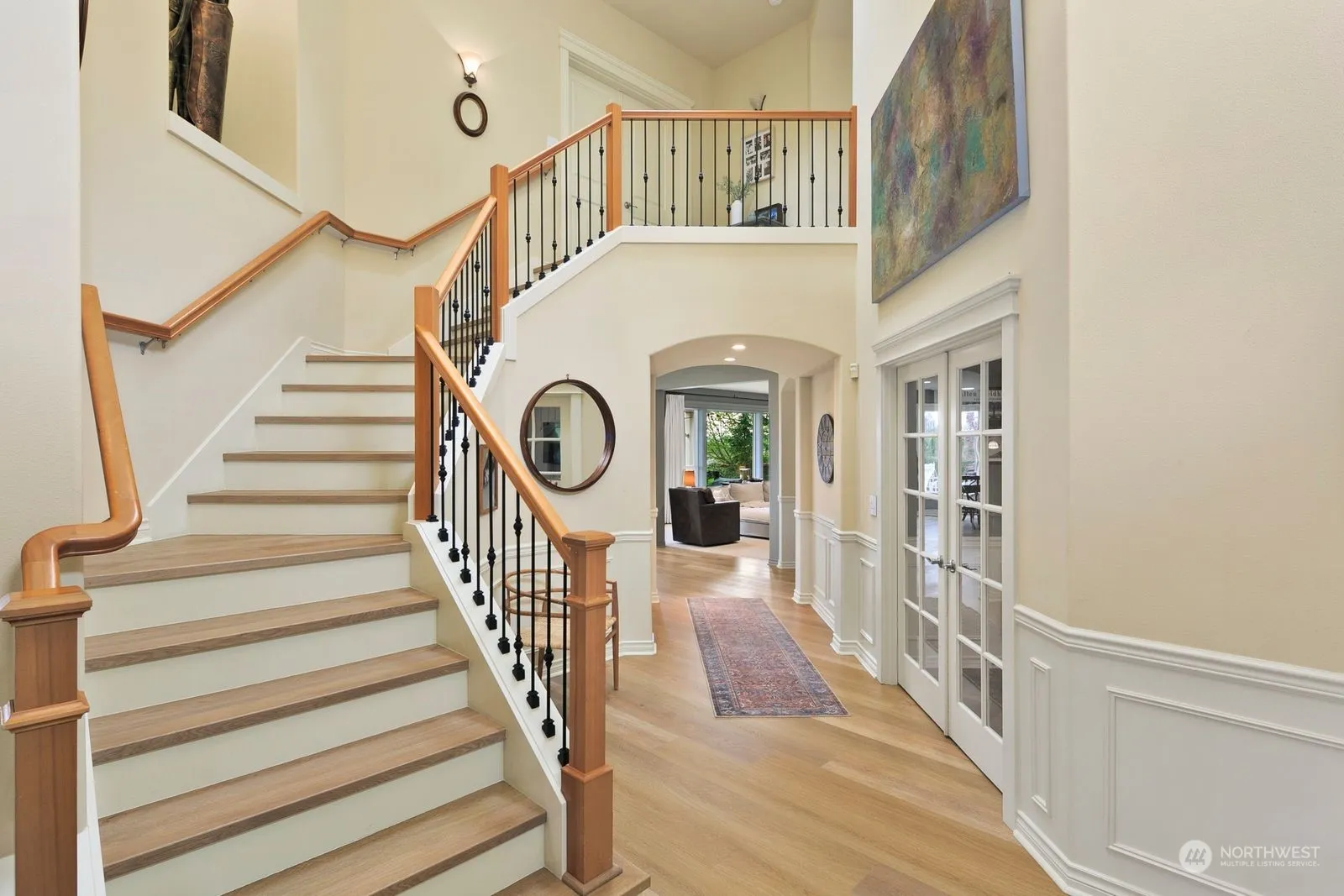 This is the one! Sophistication and charm in coveted Kensington Estates development. This beautiful home features stunning views of the Cascade Mountains on both levels of the home. Open spaces and tall ceilings throughout give the sense of grandeur and space. The kitchen w/granite tops, dual Wolf oven & large island is a cook’s delight. Dual staircases lead to 4 bedrooms & huge bonus/media room w/Murphy bed for guests. Primary suite has 180-degree views of the Cascades. The 3-car garage features custom cabinetry and epoxy flooring. Wonderful landscaping throughout w/glass greenhouse, outdoor kitchen, two patios, and a jetted hot tub. All on a private 3/4 acre lot. Just in time for summer fun.