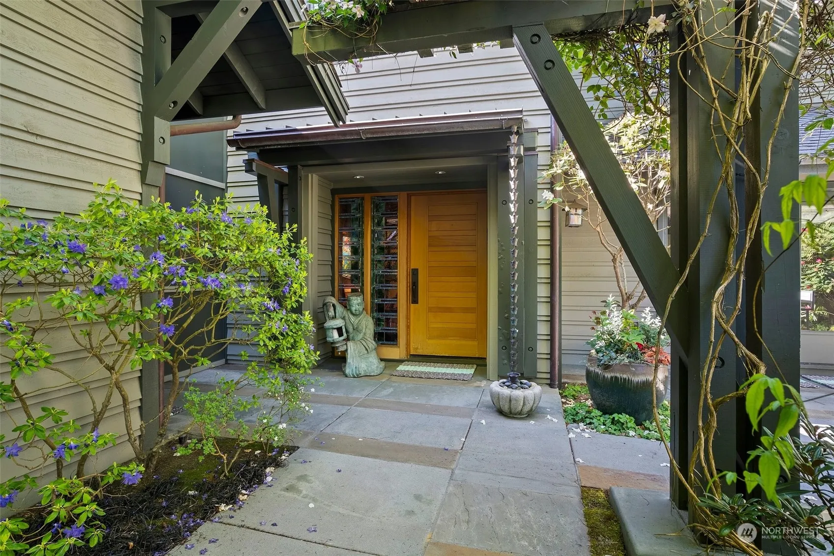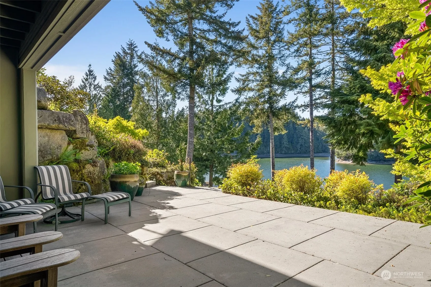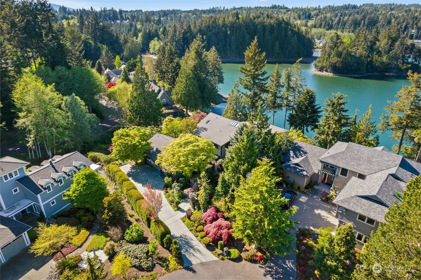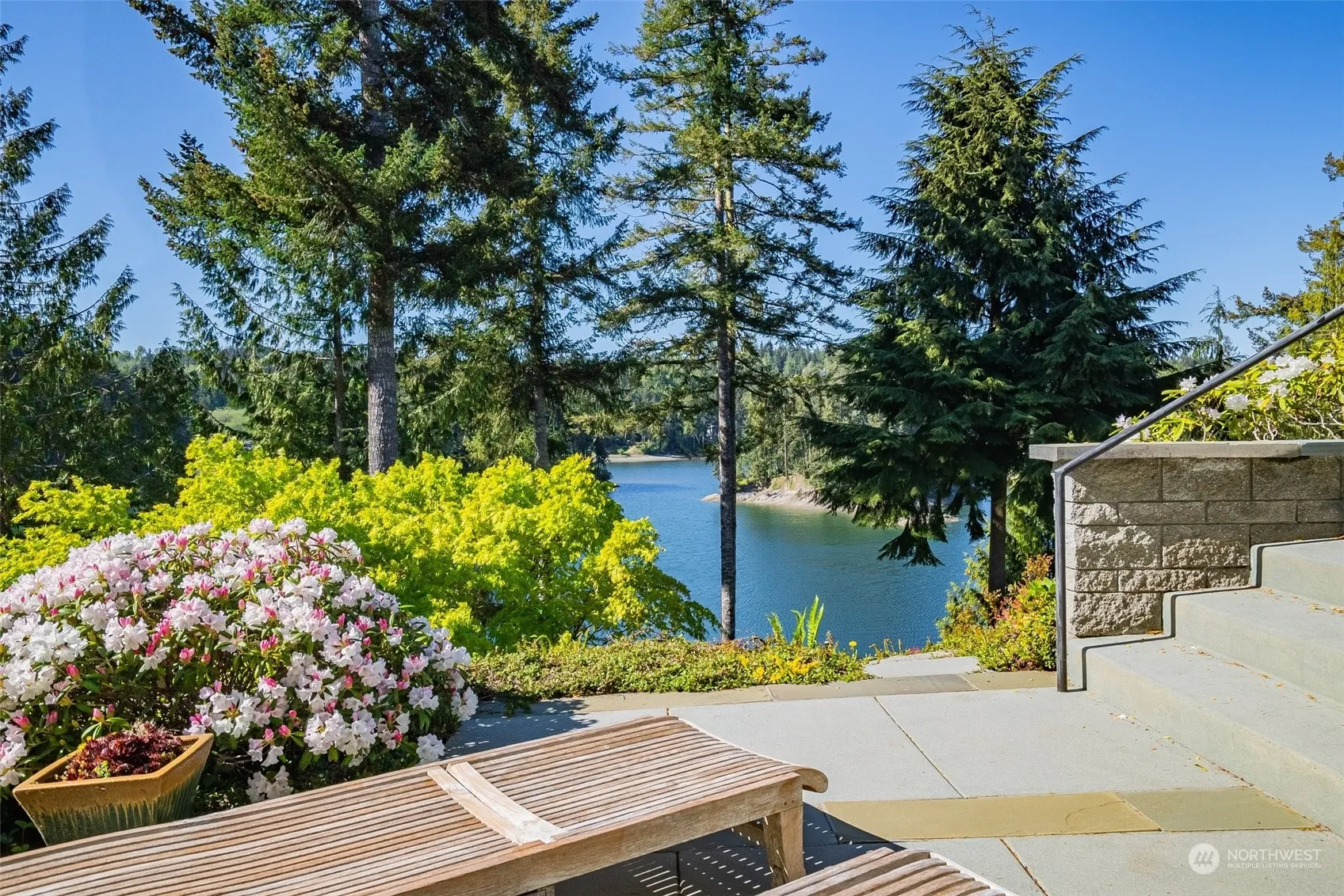 Meticulous home on South Bay featuring 163’ of waterfront and spectacular views. A waterfall and trellised entry with garden paths that meander through manicured grounds.The 35-foot, 3-story atrium highlights an art glass bridge and staircase. A Japanese water garden is surrounded by an in-home spa with meditation beds, Japanese tub, dry and steam saunas, library, and a family room with space for a gym. Chef’s kitchen with luxury appliances, island and walk-in pantry. The spacious primary has a dressing area, two walk-in closets, spa bath, and an adjacent second primary suite. Teak wall panels, stone surfaces, two offices, wet bar, walk-in safe, wine cellar, elevator and commercial-grade instant generator powers the entire home, if needed.