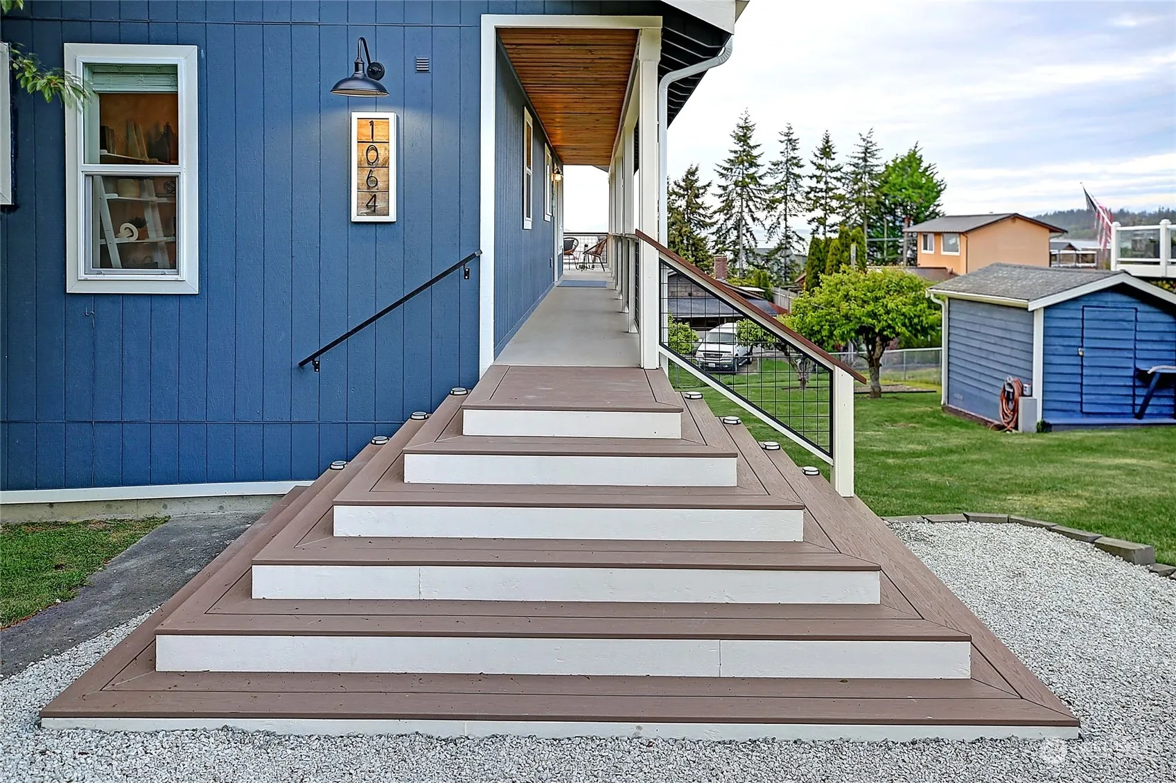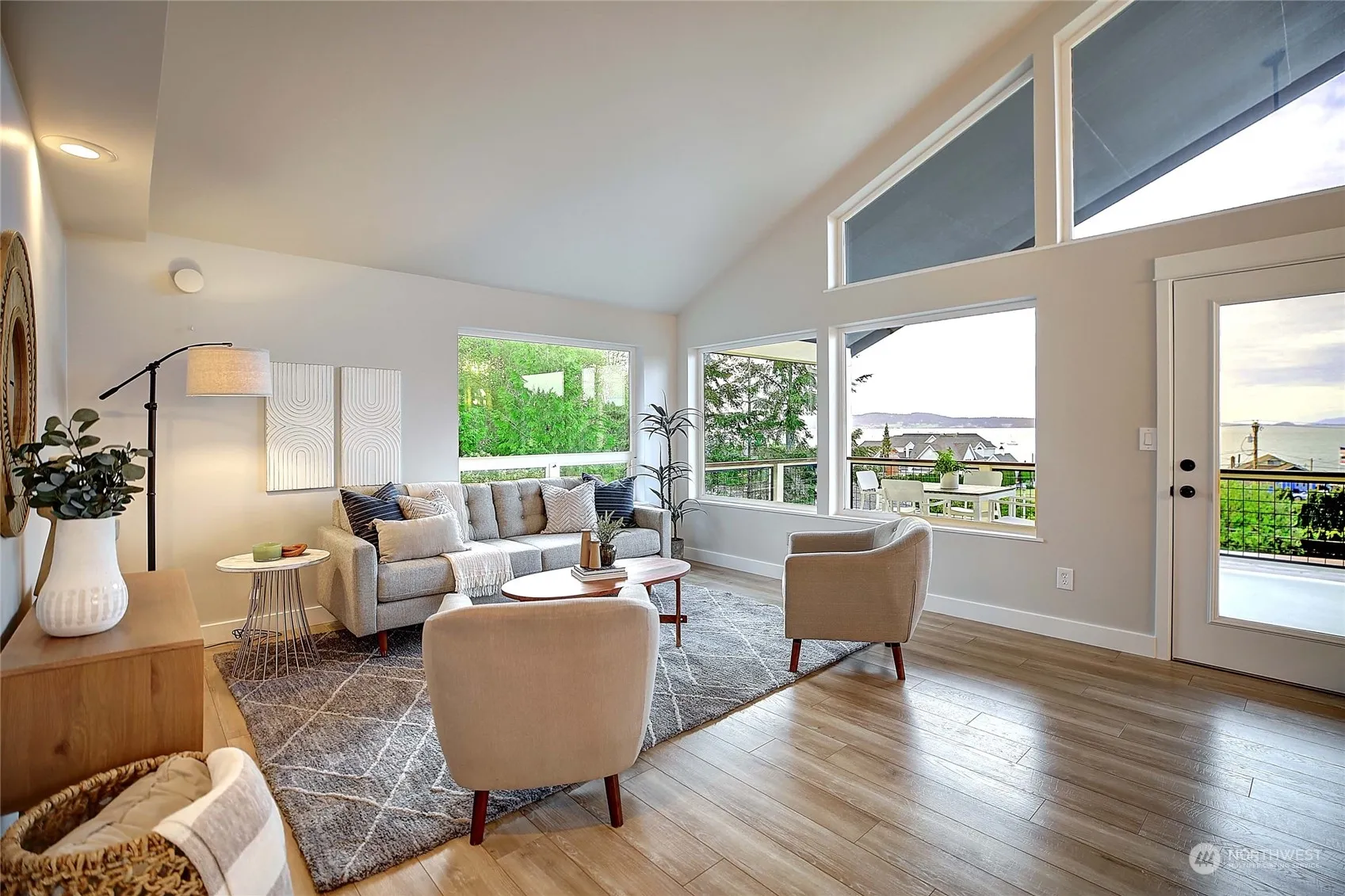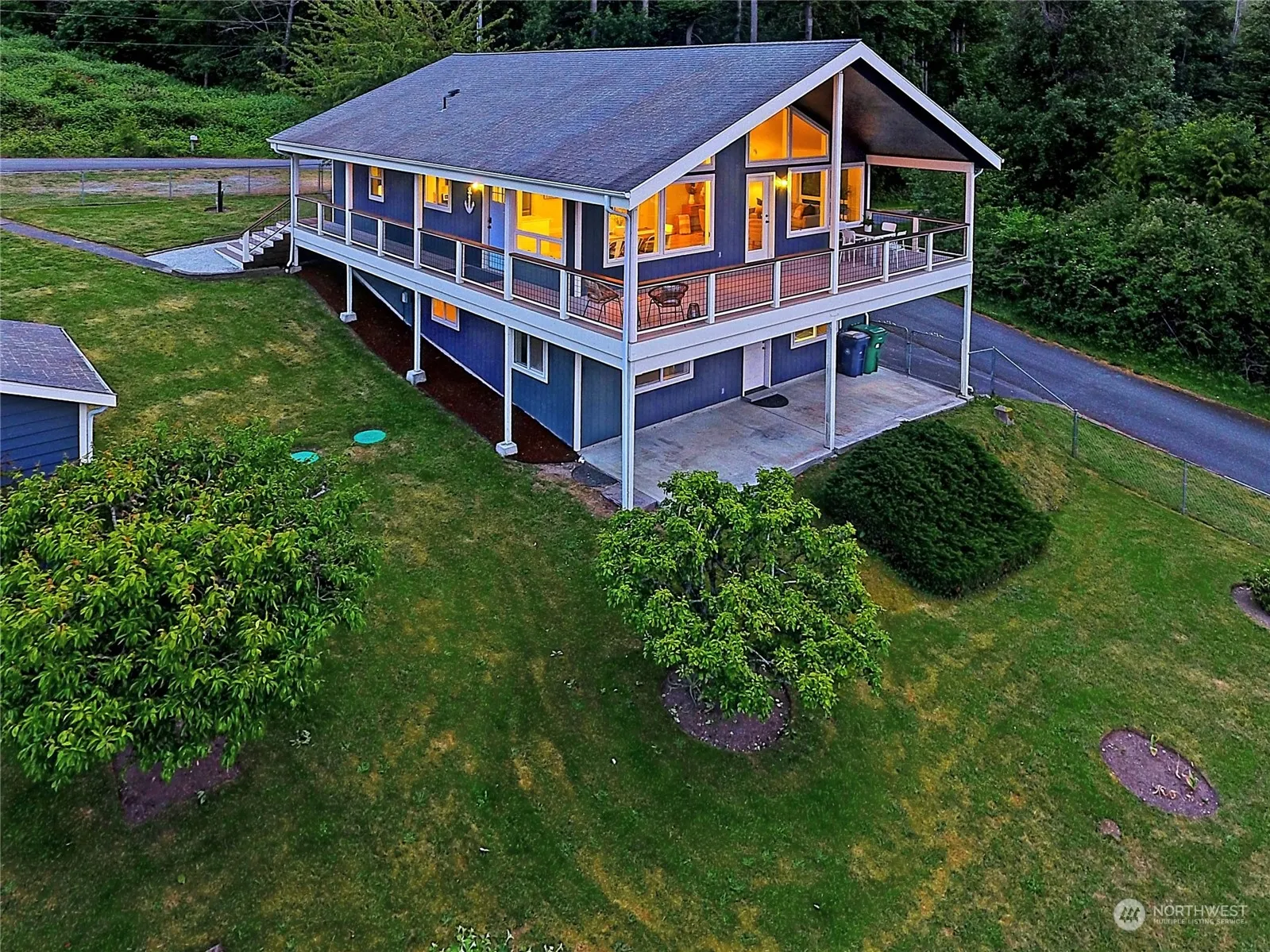 Stunning North End view home, situated on double lot and updated with over $150k in modern, high-quality finishes. Move-in ready, spectacular Sound views from expansive, covered deck to be enjoyed year round and fully fenced yard. Main level features soaring ceilings and abundance of natural light, partially finished full basement provides ample storage and the opportunity to design another living space. 2 main-level bedrooms and lower-level office/den offers flexible living spaces. Garage, carport, plenty of parking and close proximity to private community beach access. Enjoy crabbing, boating, and beachcombing in the waters of Utsalady Bay. Sought-after, easily accessible area on the Island, allows for vacation rentals. An ideal getaway!
