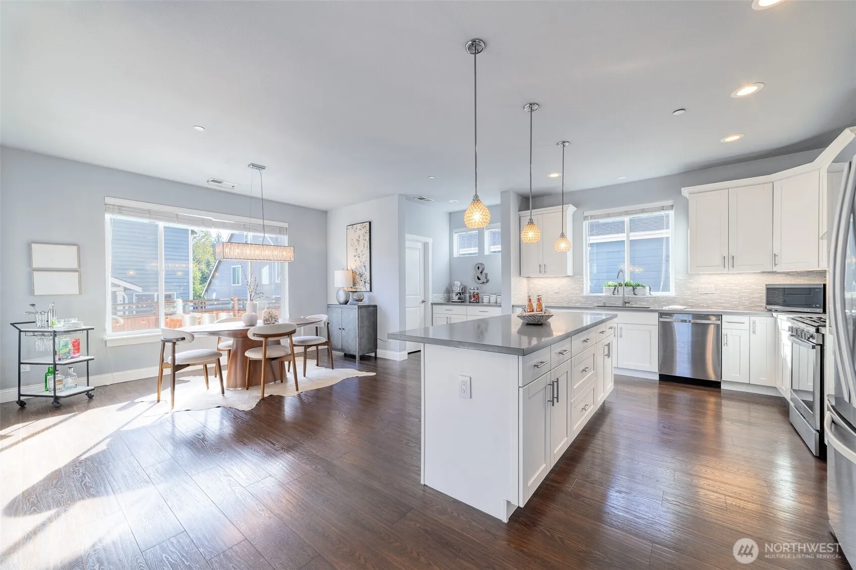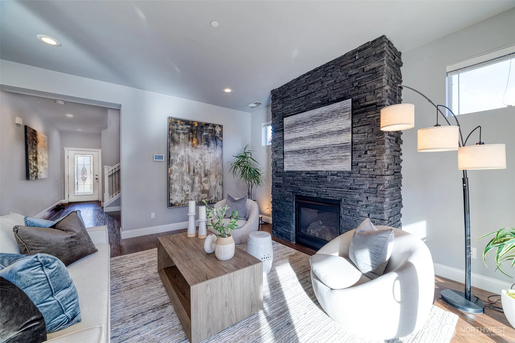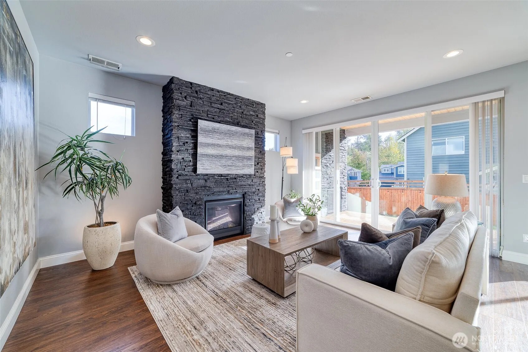 Stunning, new in 2017 home, on corner lot in desirable Copperfield neighborhood! Gorgeous kitchen w/white cabinets, gray quartz countertops, full tile backsplash, walk-in pantry & stainless steel appliances. Luxurious master suite & ensuite bath, complete w/heated tile floors, huge walk-in shower & stand-alone tub. Expansive bonus 3rd floor room provides amazing flex space! Enjoy BBQs on your back patio w/beautiful outdoor fireplace & custom flagstone patio w/gas fire pit. Features: 4 BR+office+bonus room, central AC & air filtration system, walk-in closets in all bedrooms, 2nd floor laundry, EV charger, storage shed. Steps to Fennel Creek Trail, shops, quality Bonney Lake schools w/newly renovated elementary school. Truly a must see home!