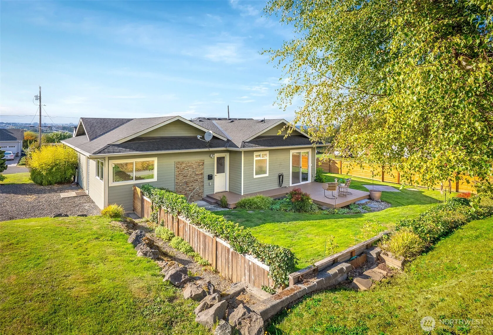 This Lake Stevens gem offers gorgeous valley views, lush landscaping, and undeniable character throughout. Inside, the spacious living room has large windows that flood the space with natural light. The kitchen and dining area are designed for both function and gathering. Down the hall, the expansive primary suite provides private access to the back patio and a relaxing ensuite. An additional main floor bedroom & bathroom provide convenience for guests. The fully fenced backyard is a true retreat with vibrant landscaping. Downstairs, the finished basement includes an additional bedroom, full bathroom, & a versatile bonus room. Ample extra parking & close proximity to Hwy-9/2. Nearby shopping, dining, Costco, and everyday amenities!