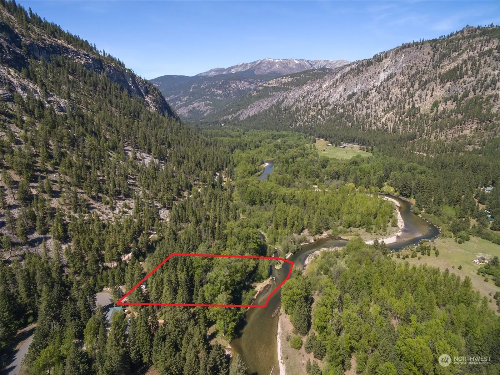 ENTIAT RIVER WATERFRONT acreage in the gated community of Riverwood. 250 feet of private waterfront footage and dwelling consisting of garage with upper and lower bathrooms plus loft. This beautiful parcel also includes RV hookup/dump, power hookup, community water system, and installed septic. Well-maintained path to the low bank beach is the ideal location to sit out and relax while soaking in the peace and solitude. Year-round well-maintained road allows for easy year-round access. Purchase to utilize as a getaway retreat, or build your dream full-time residence. Great end of the cul de sac location with privacy and most riverfront footage in the entire community. Adjacent to public lands. Perfect home base for year-round recreation.