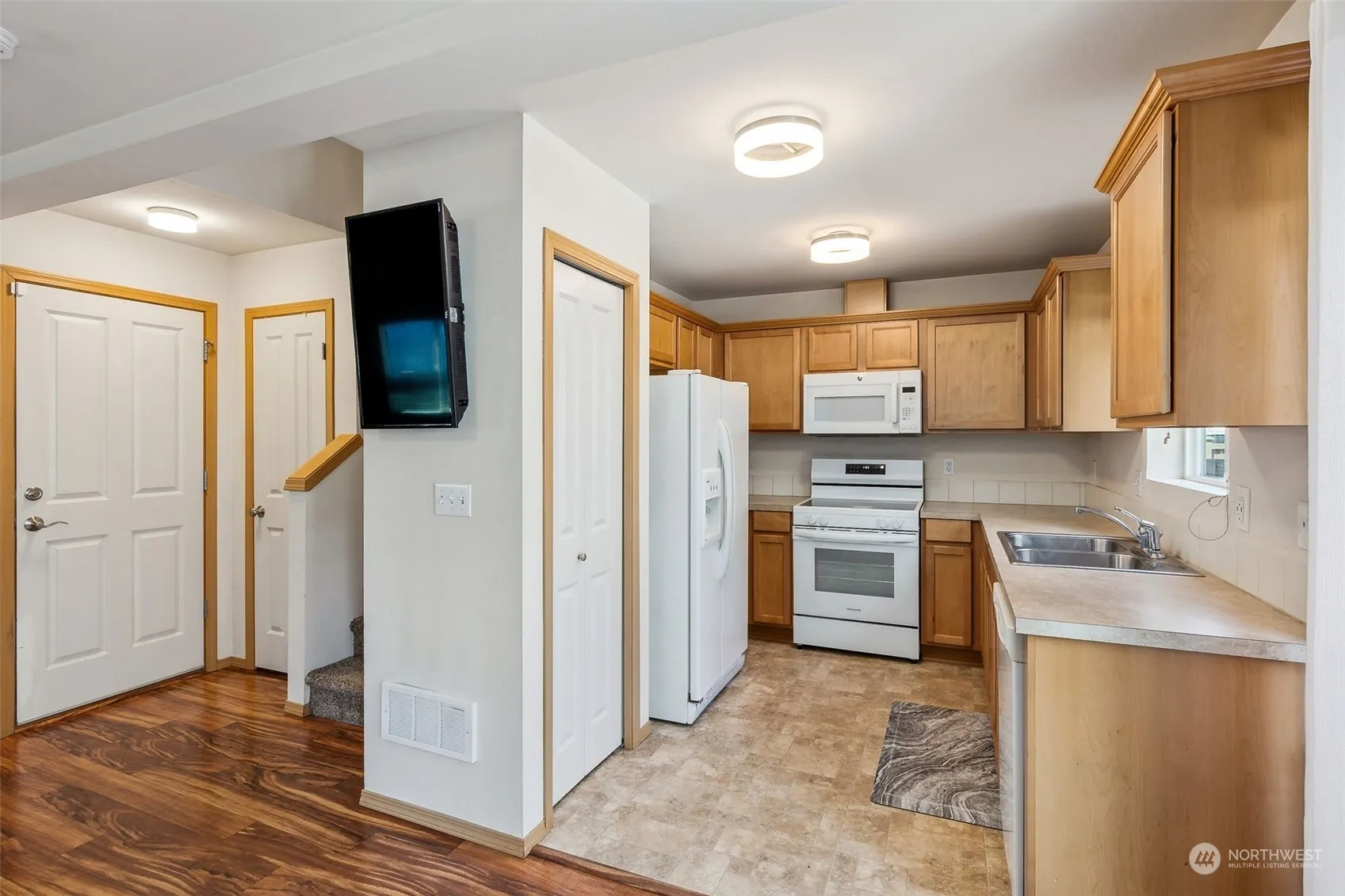 Welcome to this well-maintained two-story townhome located in the Radiance Community. Features include two bedrooms, each with an en-suite bathroom! Hard surface flooring throughout the main floor open-concept living room / dining room / kitchen. Upstairs you’ll find the two spacious primary suites, one with a walk-in closet, and a large laundry room. The backyard is landscaped for low maintenance and is privately fenced, making it a pleasant spot for relaxing and entertaining! One-car attached garage. Enjoy neighborhood parks, a sports court, and a playground. Just minutes to I-5 & 167, downtown Tacoma & downtown Puyallup!