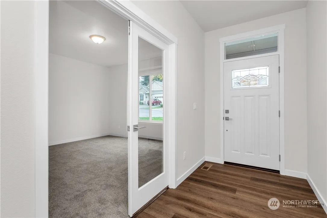 Luxury rambler by Rob Rice Homes, The Hemlock offers 2 bedrooms + den or 3rd-bed option. 2 baths/2 car garage. Contemporary finishes, open concept kitchen features an island with quartz counters & stunning SS appliances. Canyon Creek Sable-stained maple cabinets throughout with full extension guides & soft closure drawers. Engineered hardwood flooring in entry, kitchen & dining. Cozy gas fireplace in the living room. Tile flooring on the primary bathroom. Always front & back landscaping w/privacy fencing in the backyard. New energy code features include a heat pump, solar panels, & an electric heat pump water heater! This dedicated, local builder has 35+years of experience. Pictures of a similar home not actual. Completion July 2024.