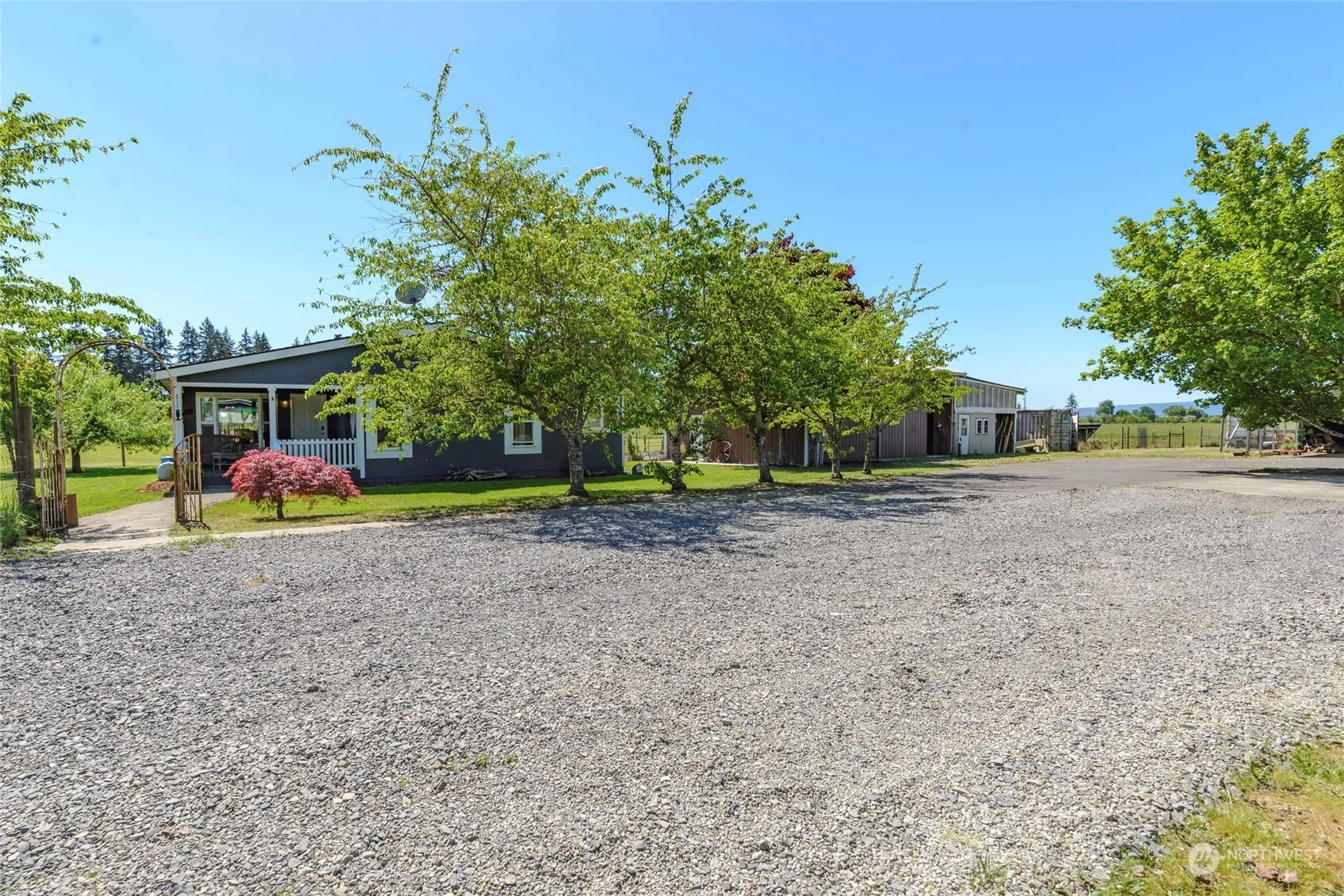 Charming hobby farm in Toledo between Seattle and Portland. Fully fenced and gated with a 30×53 shop, office, walk-in cooler. Yard, pasture, fruit trees, chicken coop, rabbit hutches, carport, fire pit. Greenhouse, RV hookups, covered deck, remodeled kitchen, fiber optics. Serene views of Mount Rainier, easy access to outdoor activities. Solar panels available for additional cost. Your peaceful retreat in the heart of the Pacific Northwest!