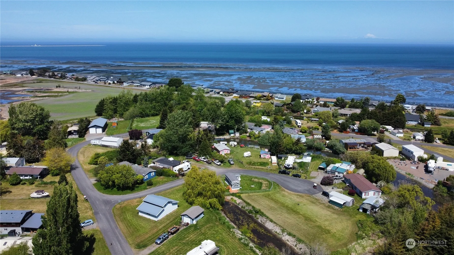 2 Bedroom PLUS bonus room home with multiple outbuildings for all your projects and hobbies. Half acre lot with a variety of fruit trees and space to park your RV. Double sinks in the primary bathroom along with an ample sized walk-in closet. If you need a workshop space, this property boasts a detached garage with power and 4 additional storage sheds! Property backs up to a green belt for a sense of privacy. The cherry on top is community beach access just a half mile away!