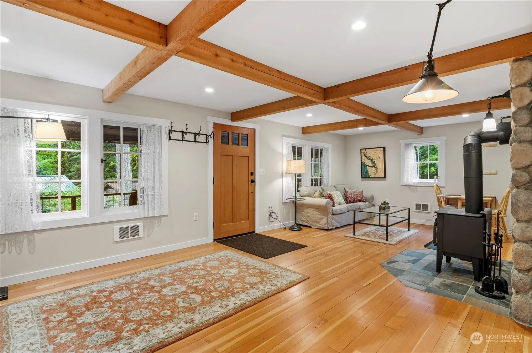 TRULY A SERENE OASIS your DREAM cabin awaits! Situated across from Index Creek surrounded with tranquility & nature. The perfect mountain getaway, full time or vacation rental. Nestled amongst the Cascade Mountains, outdoor activities are endless; skiing/boarding, scenic hikes to waterfalls, whitewater rafting, inner tubing, kayaking, fishing, snowmobiling & ATVs. Near Skykomish River and short drive to Stevens Pass Ski Resort/Leavenworth and so much more! Updated chef’s kitchen w/quartz, open layout/cozy wood stove, Exposed beams, bedroom on main, ladder up to bedroom suite, Bathroom w/jetted tub & heated floors. All appliances stay, Auto generator, New expansive deck w/covered front porch for all year enjoyment!