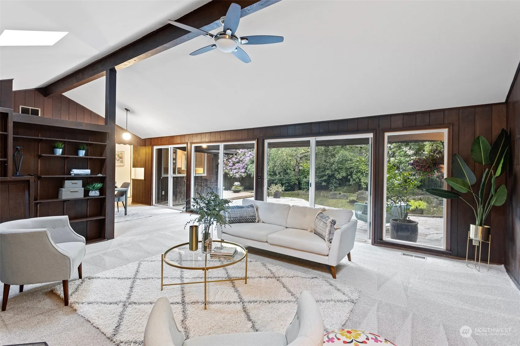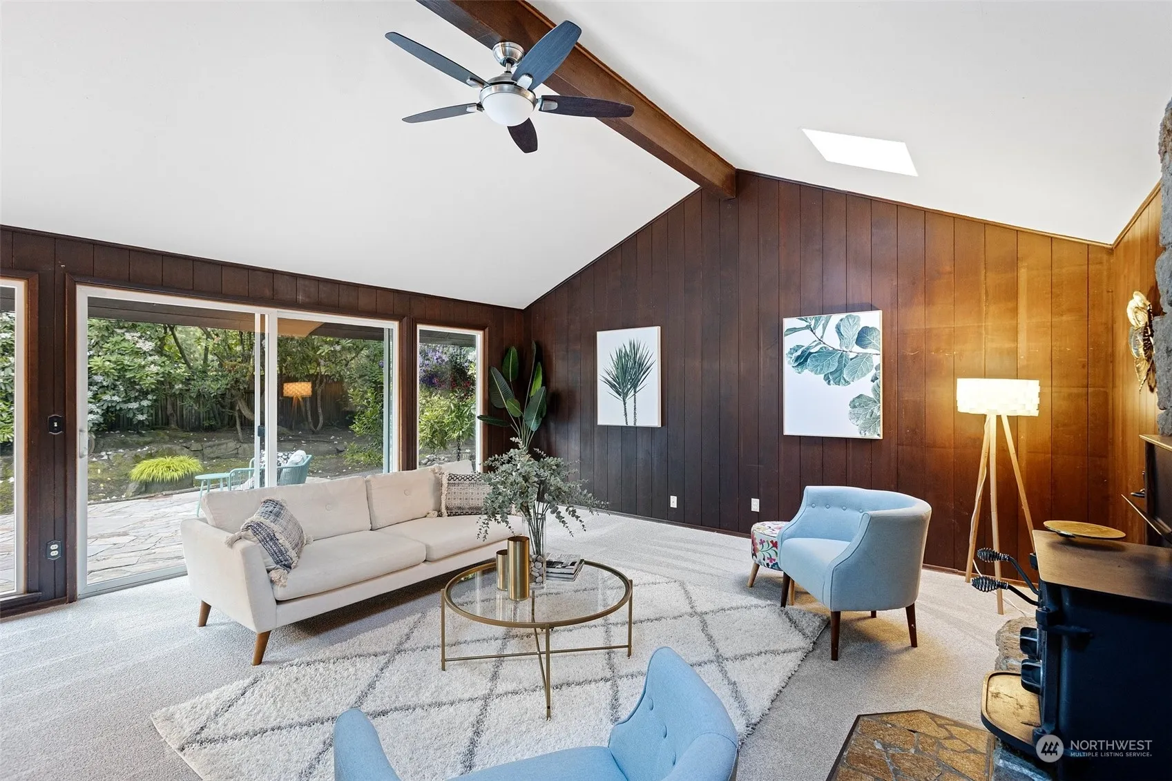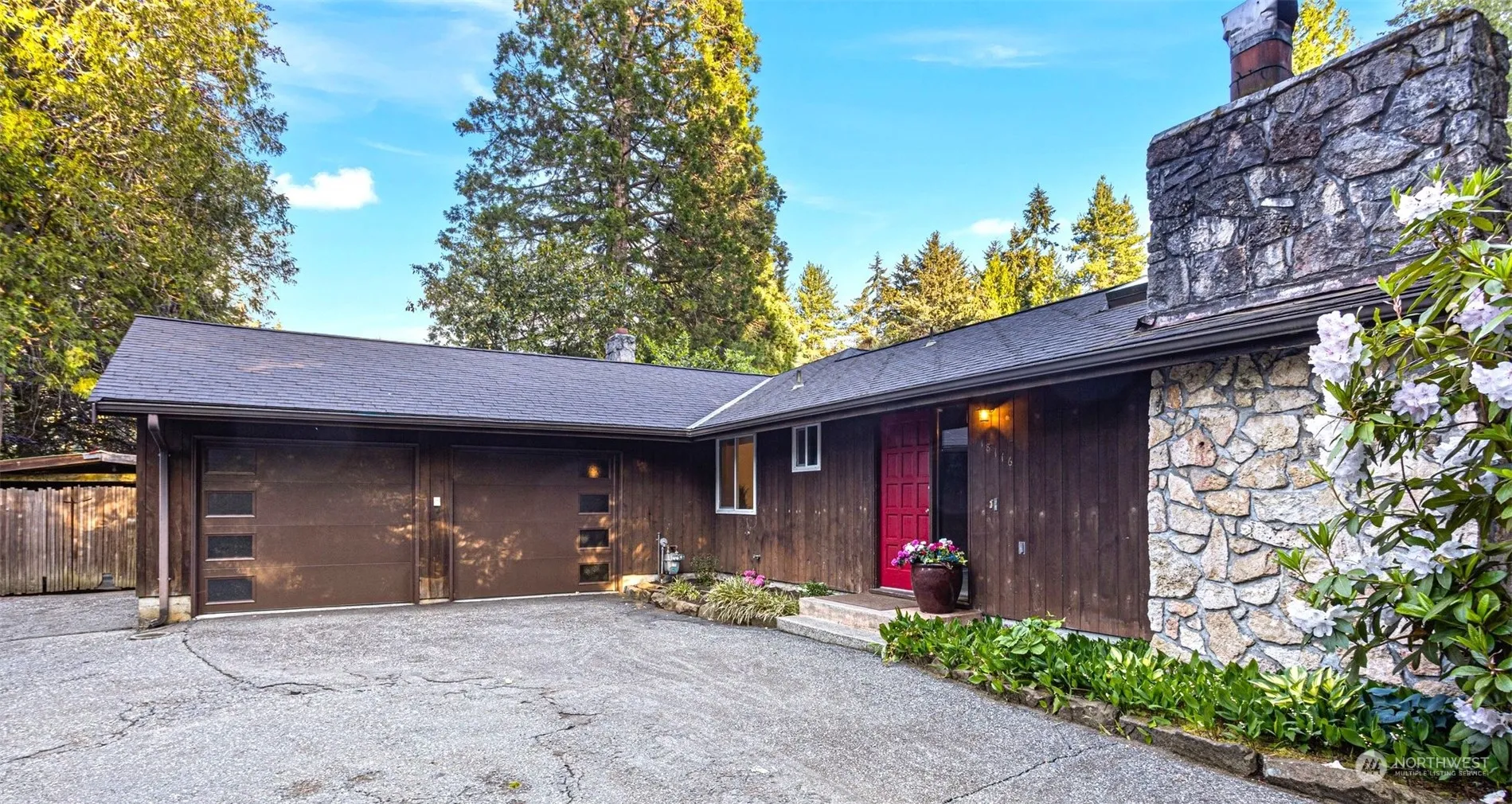 A home you will fall in love with. This floorplan, location and beautiful energy is unique. Like walking back to 1962. One-level, midcentury and a Northwest contemporary vibe. Quiet Lake Forest Park neighborhood. Vaulted living room skylighted ceilings with a long wall of glass looking out onto the ultra private backyard patio! 3 bedrooms, 2 baths, Large light and bright living room. Wood-floors in most rooms and under carpeting. Big two car garage & covered carport/shop. Circular driveway, mature and established landscaping. Deeded Waterfront Civic Club rights! Situated on a cul-de-sac. This house is COOL! Come discover how amazing Lake Forest Park living is!