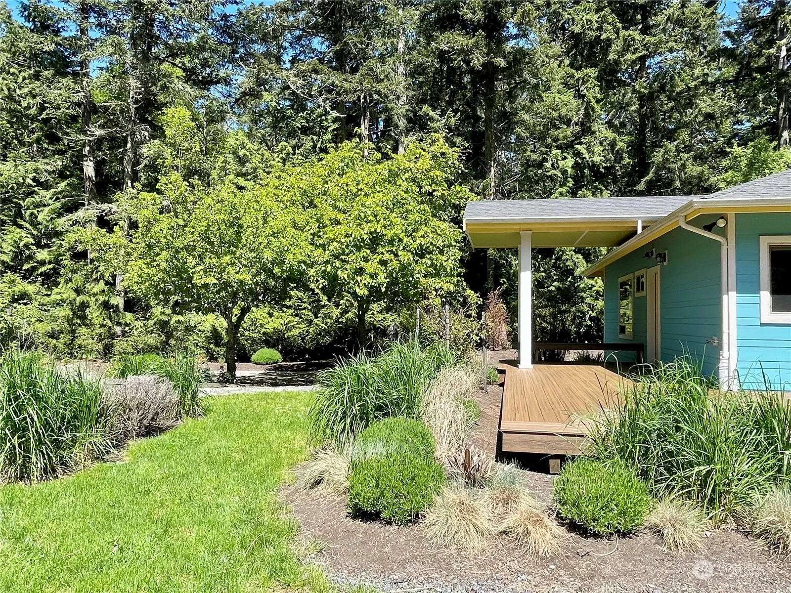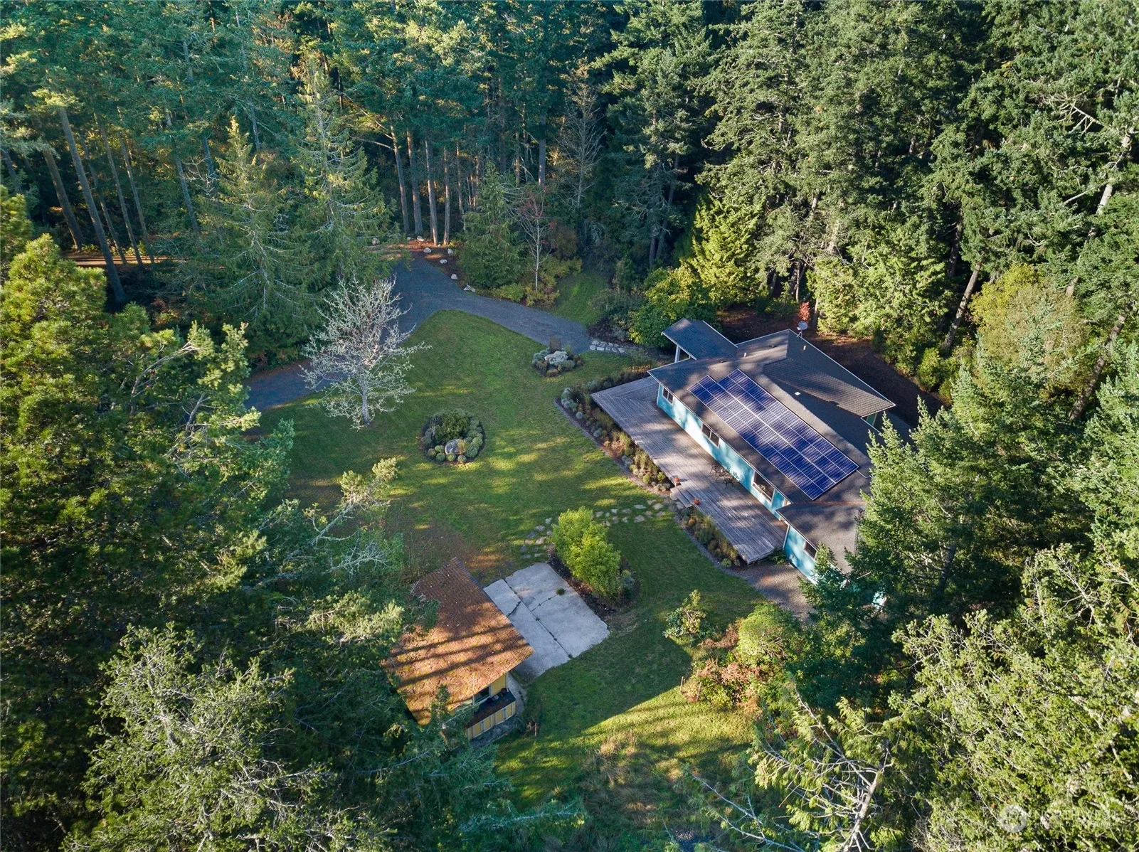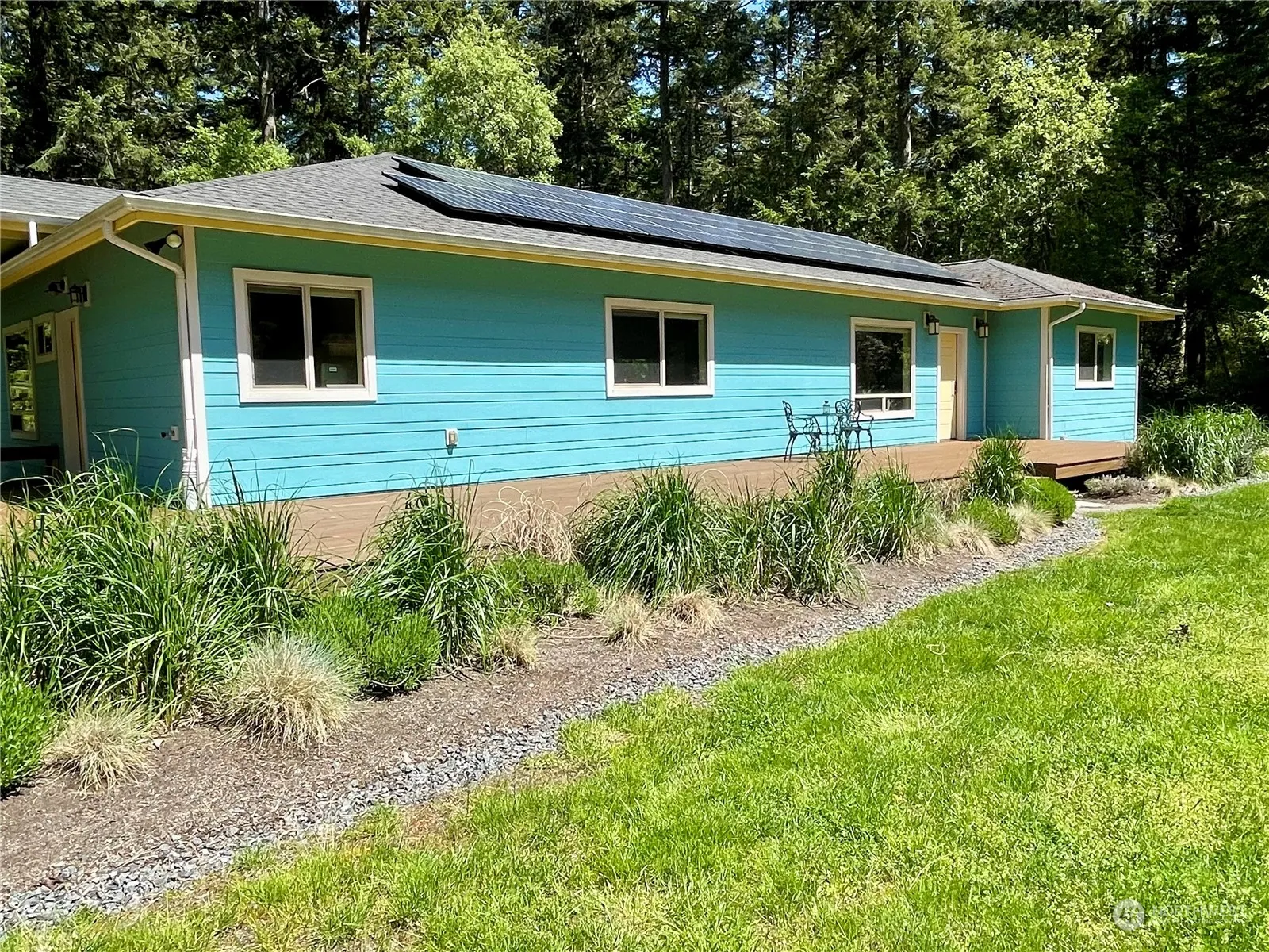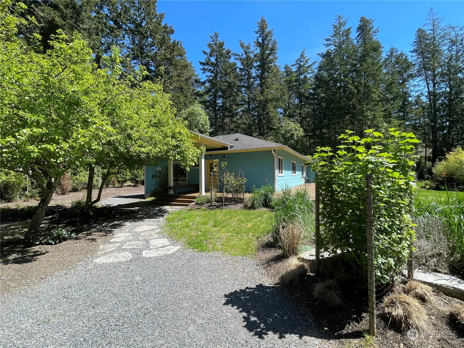 Easy living in this charming 2200 +/- SF single level NW home on 2 +/- acres. Thoughtful and flowing floor plan offers 2 bedrooms, 2 baths, and office. Beautiful bamboo floors, amazing gourmet’s kitchen with eating bar, great room and fireplace. Over 1000 sf of new easy care decking for relaxing gatherings. Solar panels offer added benefit with energy saving. Low maintenance landscaping and room to garden! Perfectly sited, graced with cedar and fir, mature fruit trees, outbuilding for projects and storage. Minutes from town amenities, in prime neighborhood, this home offers the perfect blend of convenience and privacy. High speed fiber installed. If you have been waiting for a turn key single level home near town, this is it! By appt only.