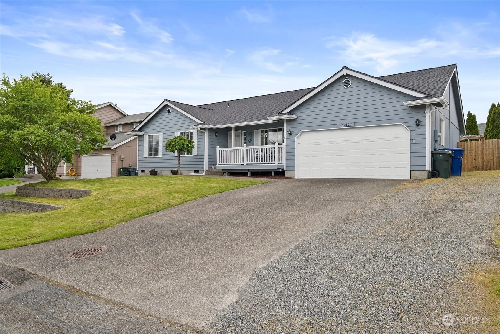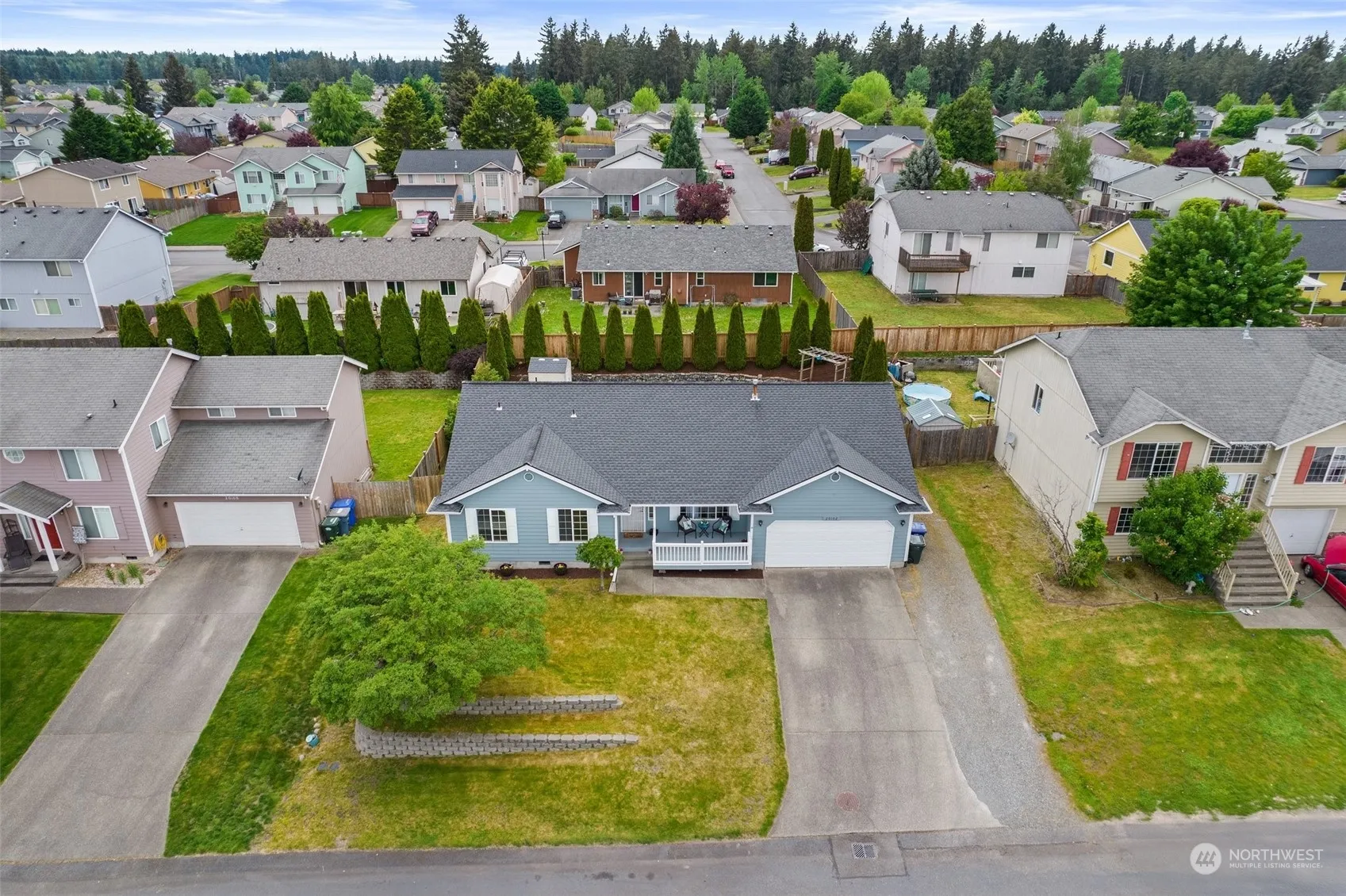 This beautiful home in the highly sought after Spanaway/South Hill area offers a large Primary bedroom with walk-in closet and bathroom along with 2 other nice sized bedrooms and a bonus office/den featuring french door entry. The nicely manicured lot features a fully fenced backyard along with a nice sized patio for summer entertaining. You also have the peace of mind that many bigger ticket items have been updated. A completely new roof was done in 2019, brand new gas water heater and exterior paint done in 2023 and new interior paint, new dishwasher, and the new carpet and flooring all done this year. This home is ready to go just in time for summer bbq’s and a nice cup of coffee in the morning on your beautiful front porch!!