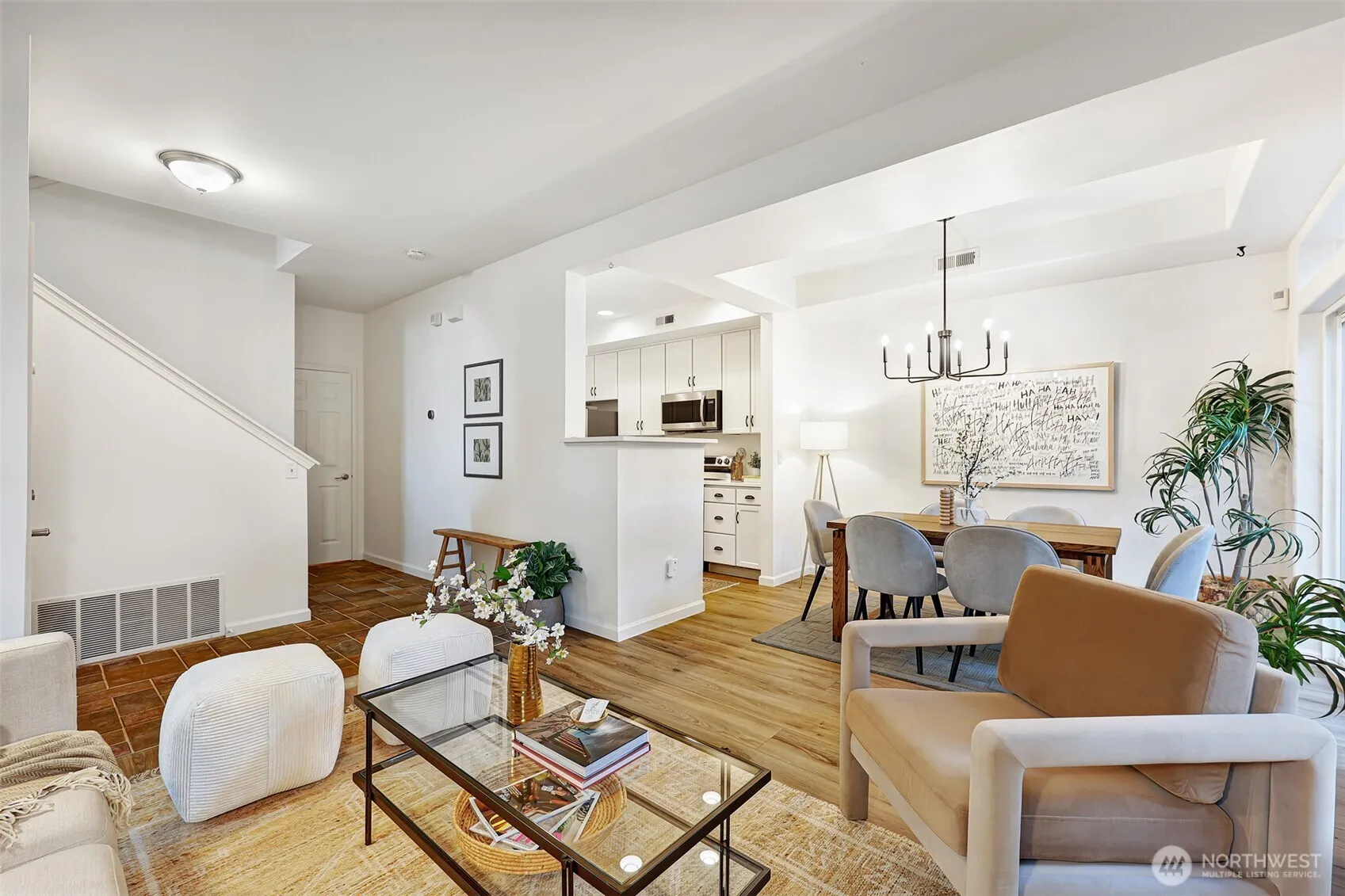 Welcome to this smartly designed townhome in a quiet, cozy community in coveted Edmonds. This end-unit seamlessly combines comfort, functionality & insta-ready aesthetics. Private entrance, high ceilings, gas fireplace & lots of natural light. Open kitchen, living, & dining provides an inviting atmosphere & direct access to private patio & garden. Thoughtful updates include newer appliances, fresh paint, quartz counters, gas furnace, LVP flooring & new carpet. 3-beds (all up!) with spacious primary with walk-in closet. 2-car garage conveniently connects to the mudroom/ laundry. Proximity to shopping, restaurants, public transit, I-5, Highway 99, the charming Edmonds business district, ferries & downtown. Pet-friendly & no rental cap.