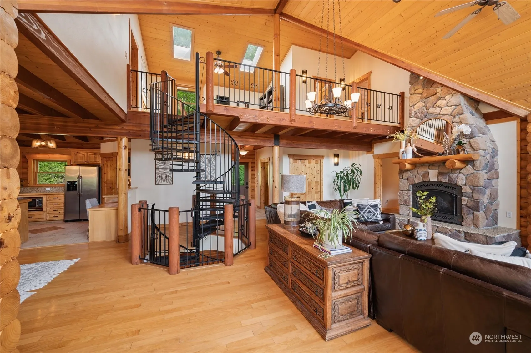 Amazing opportunity to finally live in the kind of home that checks all the boxes! This architecturally pleasing 3,628 sqft log home is perfectly situated on almost 14 acres to take advantage of the outstanding sun exposure and views to the west, while maintaining a presence on the property of prominence and stature. With 4 bedrooms and 3.5 baths, wrap around decks, and two primary suites, this property has the size and elegance to accommodate almost anyone. Featuring a new 40×30 shop Hardwood floors, granite countertops, SS appliances, built-in surround system, radiant heat floors and a Navien Boiler, there is nothing to do but move in. A circular gravel driveway gives multiple access points to the home and allows for one level living!