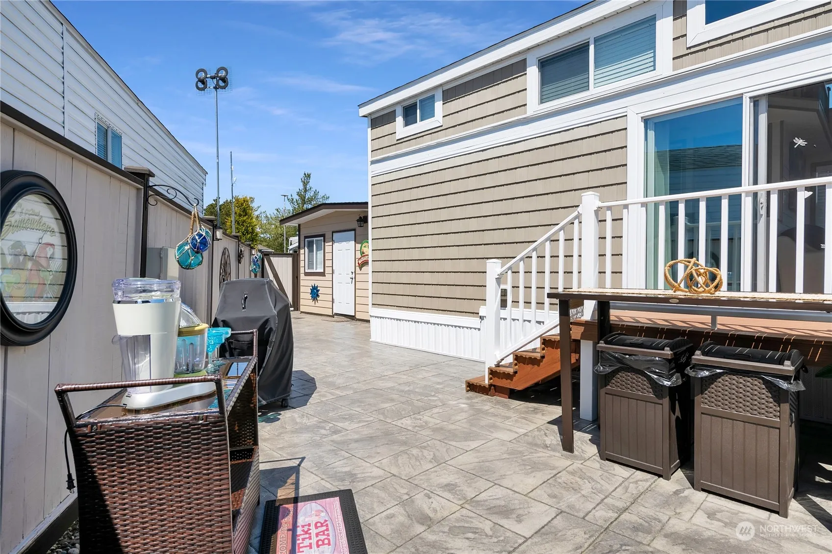 Extraordinary opportunity to own a luxurious Birch Bay Leisure Park residence. Craftsmanship shines with meticulous attention to detail. Main house boasts spacious first-floor bedroom, two large beds in double upstairs loft, plus charming double accommodation in rear for four guests. Sleeps up to 10, perfect for gatherings. Every inch adorned with high-end finishes. Step onto stamped concrete patio for outdoor bliss. Fully conditioned shed included. New high-end golf cart with new batteries. Heart of Birch Bay, vibrant coastal community. Washer/dryer hookups or nearby facilities.