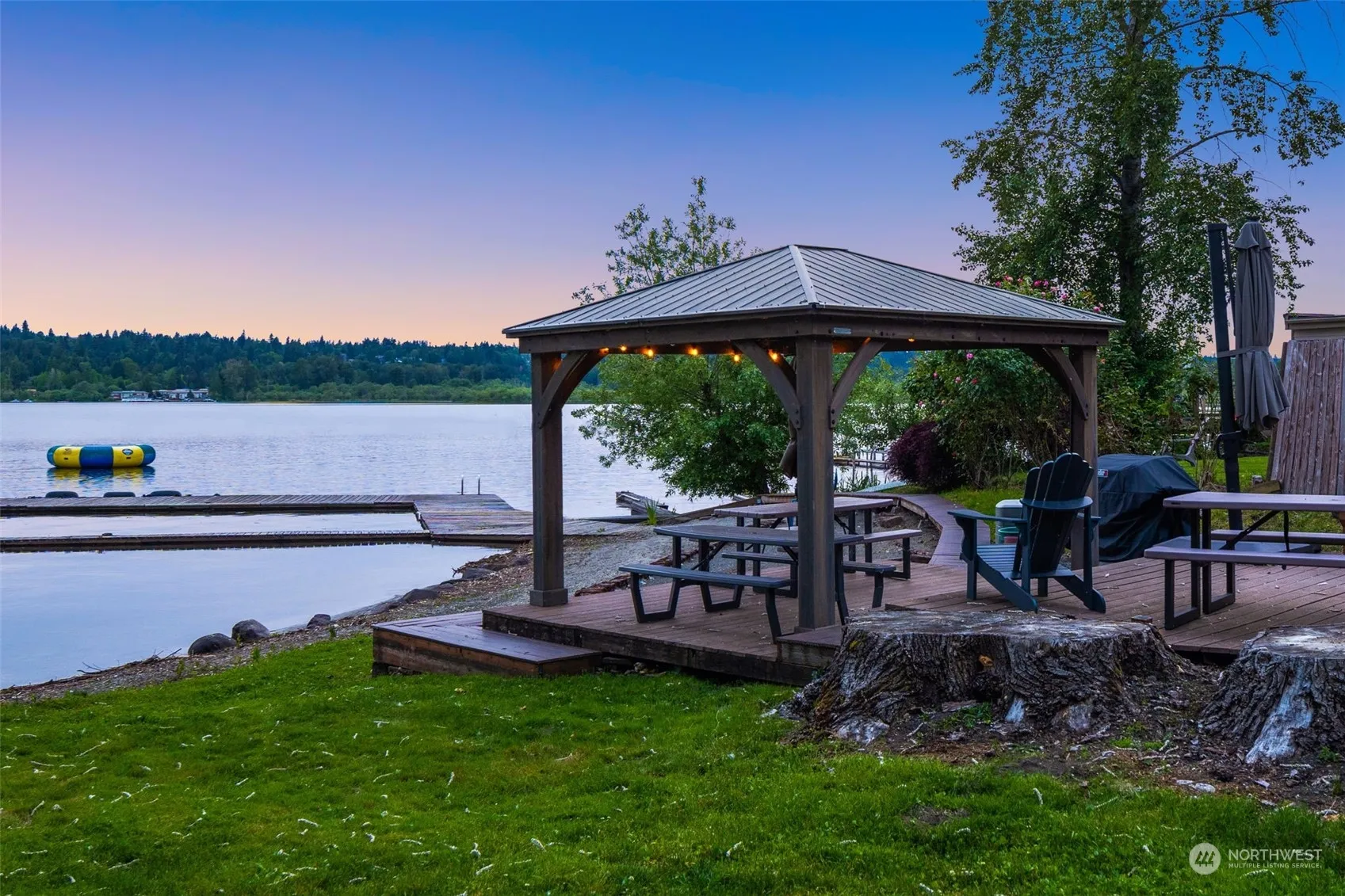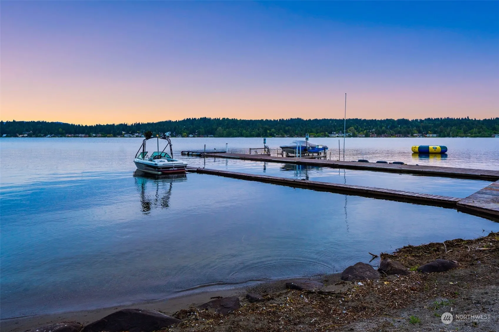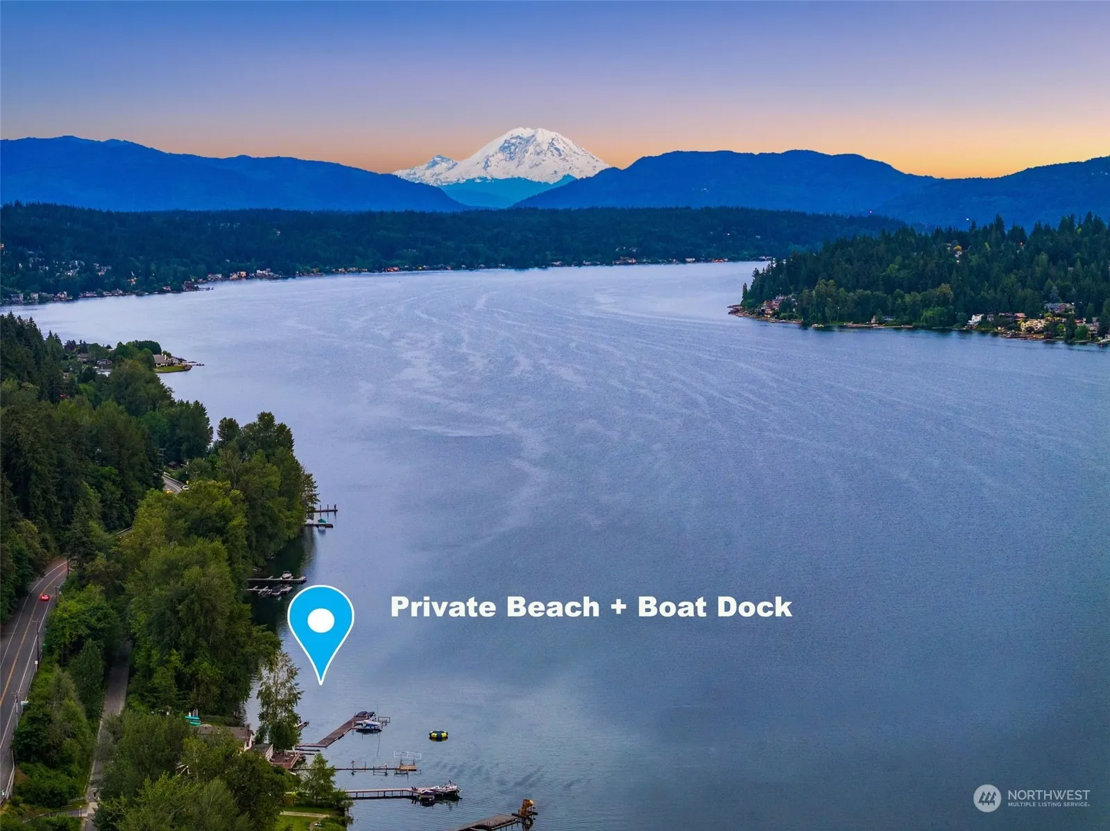 Ring in summer on & off the lake in this designer-updated home in a community which has a knock-your-socks off private beach for your summer fun! Wind up the private drive to the home’s dramatic entry which sets the stage for welcoming guests to enjoy the best in life! Move from the sunny front decks to the kitchen w/ counter seating, and out to the back patio retreat w/ hot tub. Sweeping lake views from the primary bedroom w/ private deck that overlooks the estate-like grounds. Take in summer sunsets and Mt. Rainier from the community beach w/parking, docks, gazebo and trampoline. Award winning schools: Blackwood, Inglewood & Eastlake. 3-car gar w/ storage, shop & w/ ½ ba, 220 EV charging, AC, dog run, ample off-street & boat & RV parking.
