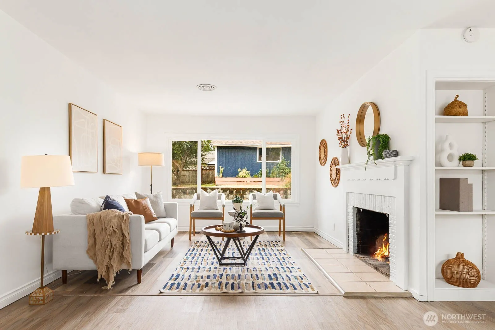 Discover the epitome of mid-century charm in this meticulously updated, move-in ready University Place rambler, perched on a sprawling 12,000 sf lot. Freshly painted inside and out, step inside to a sun-drenched living room with new windows anchored by a cozy wood-burning fireplace. Retreat to the primary suite boasting a walk-in closet, a spa-like 3/4 bath, and a private fenced patio. Just down the hall, three spacious bedrooms and a full bath. The kitchen shines equipped with sleek new appliances and quartz counters, plus A/C! HVAC installed 2023. The crown jewel: a massive detached garage/shop ideal for hobbyists, mechanics, or extra storage. Enjoy nearby Sunnyside Beach Park with waterfront access, shopping, and top-rated schools.