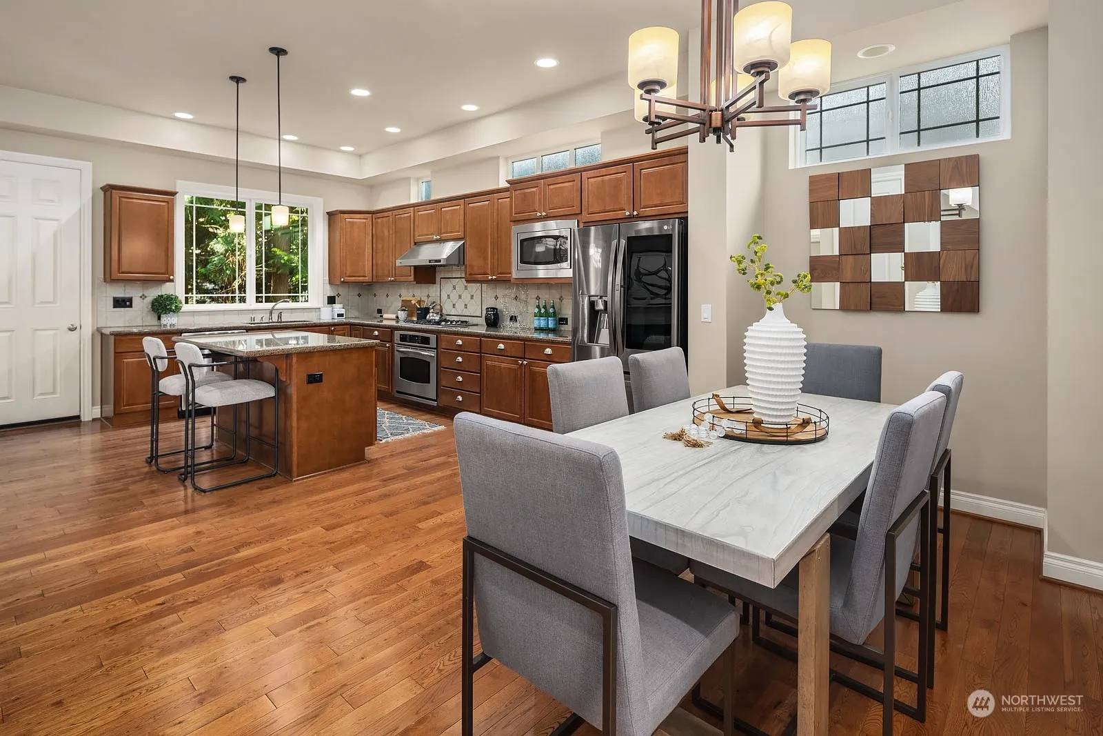 Welcome to Two Story w/basement in the heart of Redmond. Open concept kitchen, dining room and family room. SS appliances with granite countertop and large island. Natural light filled the living room on the main w/10 ft ceilings, gas fireplace, engineered hardwoods. From the kitchen a door opens to a spacious deck with fully fenced yard and good size patio for social gathering. On the upper floor 3 large size bedroom, private primary bedroom with spacious bathroom, double sink vanity and large walk-in closet. Lower level has a huge bonus/media room & 2 car garage. High end blinds installed and A/C for warm days. Three visitors parking areas for your guests. Easy access to MSFT, Google, Facebook, 520 restaurants, shopping, trails & parks.