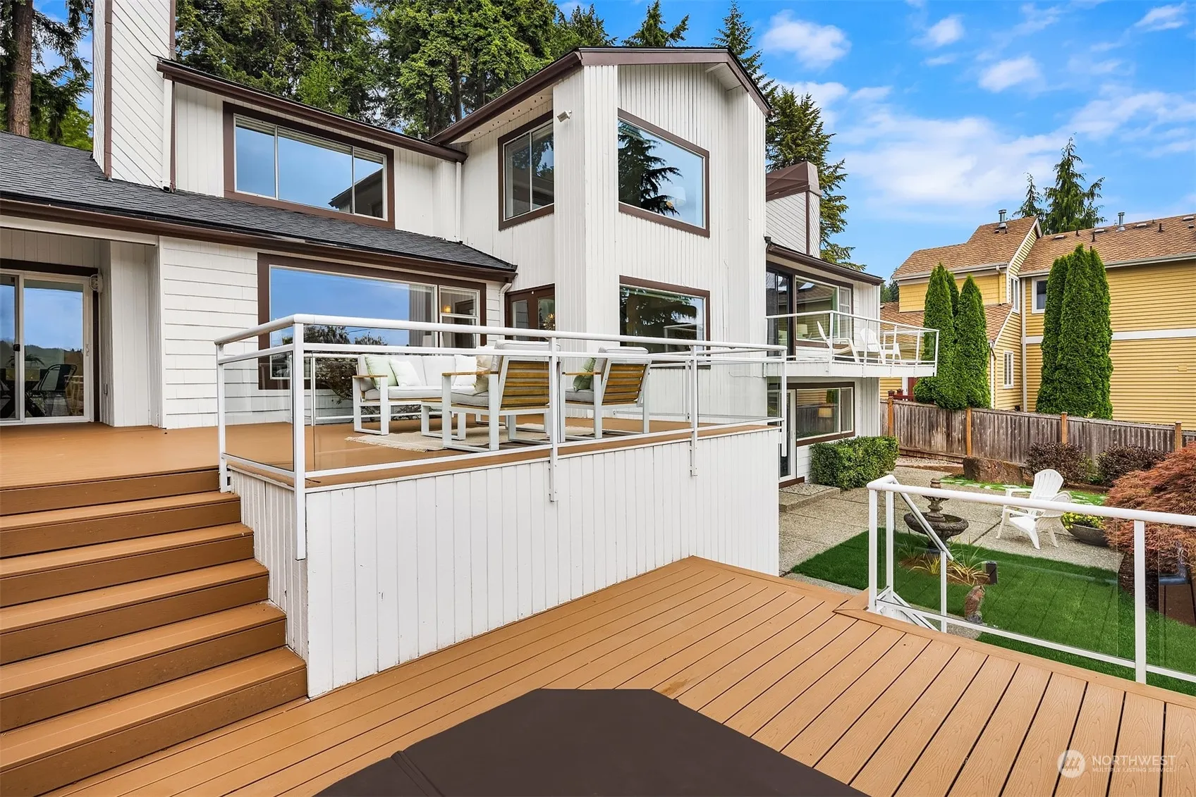 Just steps from the beach, this spacious retreat offers exquisite finishes & 30 feet of shared waterfront. Its open layout has all the right spaces for your lifestyle—whether you’re gathering in the elegant living & dining areas, relaxing in the fireside family & rec rooms, or prepping gourmet meals in the grand granite/stainless kitchen. Savor sparkling lake views from your vaulted owner’s suite featuring a walk-in closet & sumptuous 5-piece bath with separate shower/commode room + soaking tub. Three more bedrooms plus a den and extra storage provide ample flex space. Step out for parties on multiple decks and patio all overlooking the lushly landscaped back yard. New roof, fresh paint and carpet. Your Lake WA lifestyle starts here!