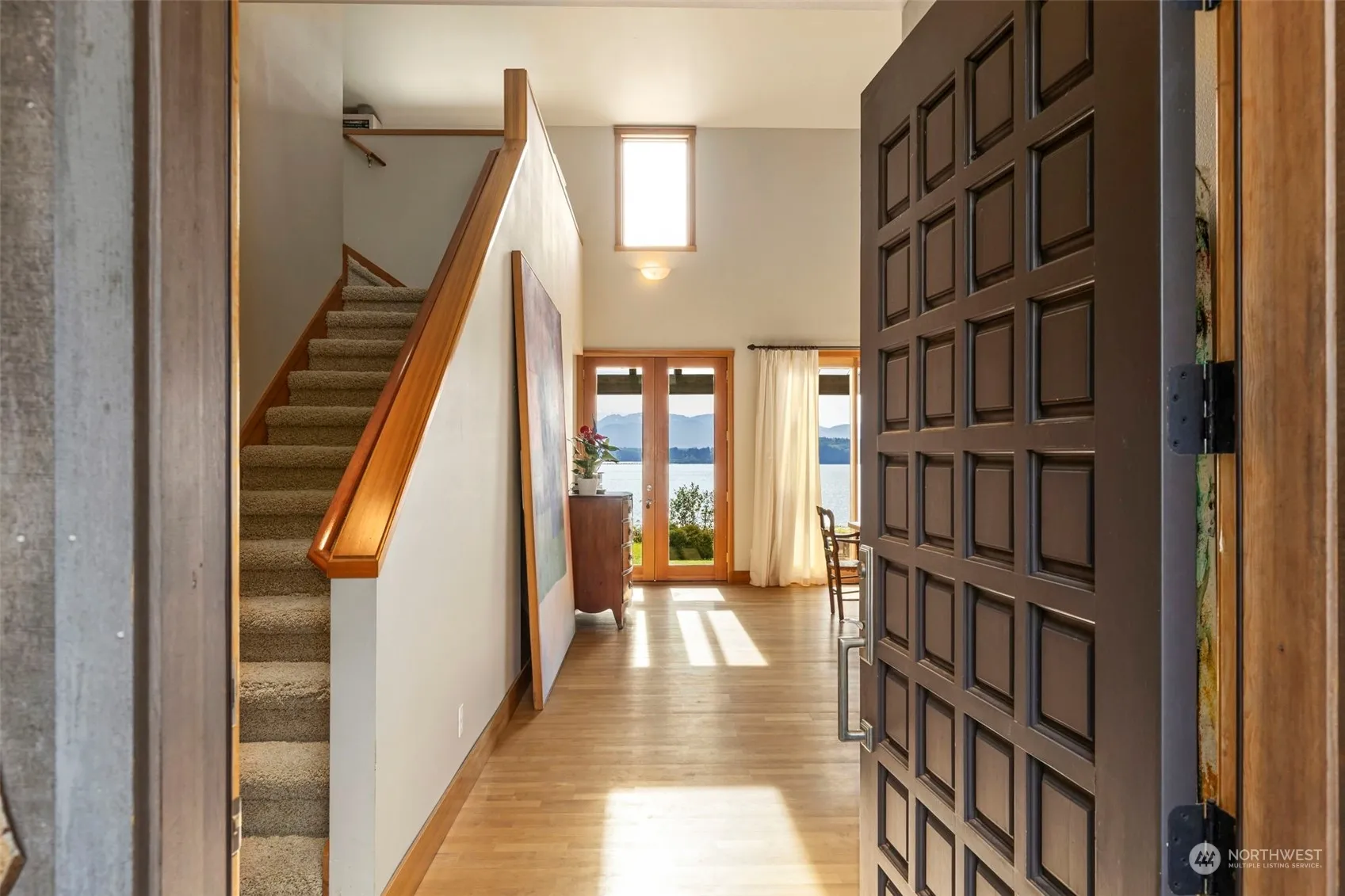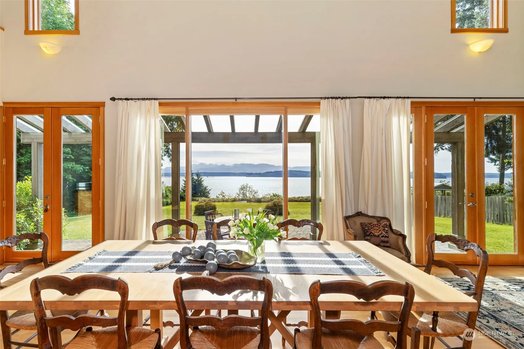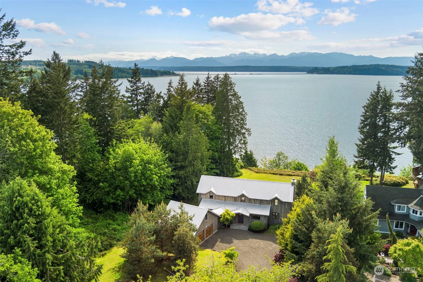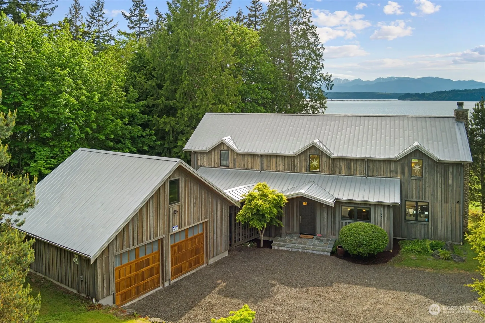 Embrace waterfront living with this exquisite 2,328 sqft residence, perfectly positioned on an attractive 1-acre lot to capture breathtaking west-facing views of the Hood Canal & Olympic Mountains. This meticulously designed home boasts 3 beds & 2.5 baths, featuring soaring ceilings & wall to wall windows that create an airy & open ambiance throughout. The heart of the home is adorned with radiant in-floor heating, slab granite kitchen countertops, & elegant Maple wood floors, seamlessly blending luxury with comfort. A 672 sqft detached garage, complete with finished space above, offers versatile use as well. Nestled in a coveted location, just a stone’s throw away from Kingston’s ferries, restaurants & endless outdoor recreation!