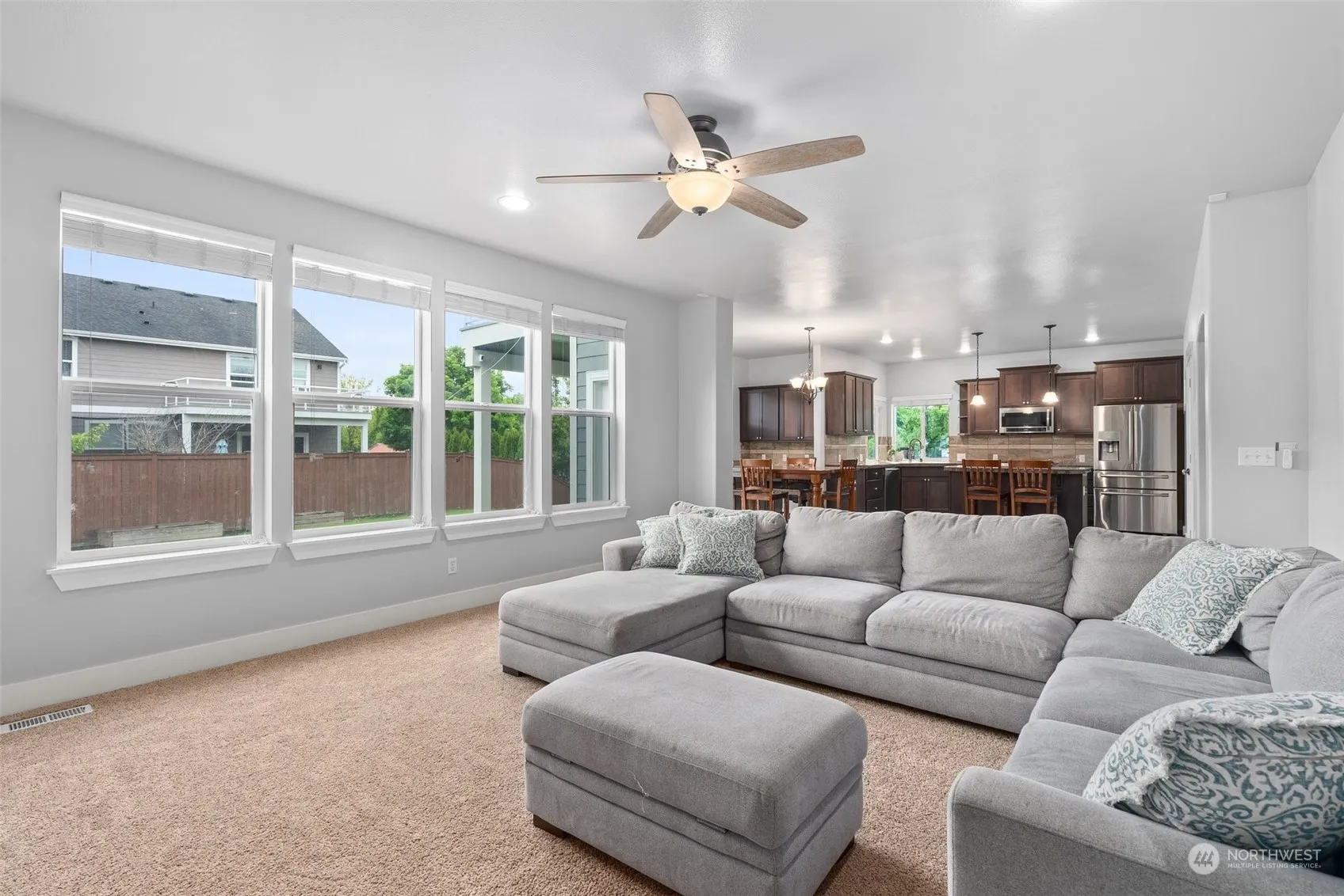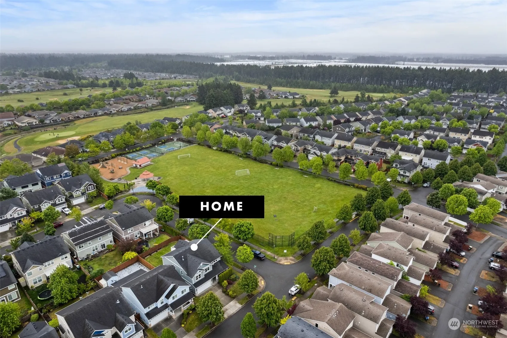Spacious corner lot adjacent to a park with stunning views of Mt. Rainier! Features both formal and informal living and dining areas, abundant windows, and beautiful hardwood floors. Enjoy the oversized family room with a gas fireplace and built-ins. The kitchen boasts granite and tile countertops, stainless steel appliances, a gas stove, an island, and a built-in desk. The primary bedroom includes a balcony with a view and a luxurious five-piece bath. Stay cool in the summer with AC. The property includes a 2-car garage, a fully fenced yard, and a covered patio. The community offers 3 parks, a trail to the beach, and is just minutes away from shopping, restaurants, and JBLM. The HOA takes care of front yard maintenance.