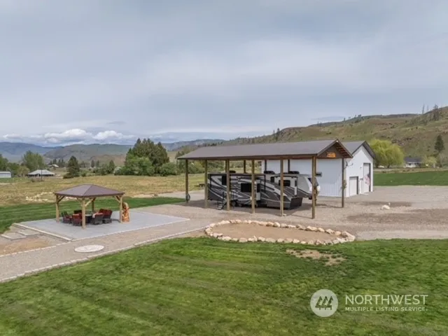 5 Beautiful level acres with 196 feet of high bank River frontage. This 5+ acres is better than new, all the hard work has been done and the improvements are AMAZING! Gravel driveway to the River. Upgraded well is in, a 3 bedroom septic is permitted and in, an immaculate well built 40×40 Shop with large RV door and regular sized garage doors. Shop includes Propane gas heat, bathroom, shower and washer and dryer. Plumbing and electrical in, 200 Amp Service. A 2022 Vanleigh Beacon, Model 41FLB, 42.6 long 5th Wheel, gorgeous and like new and connected to Septic and electrical, covered by a new stout pole bldg/roofed 24′ x 50′, 2.5 irrigated lawn. Large graveled driveway and building pad ready for your dream home!
