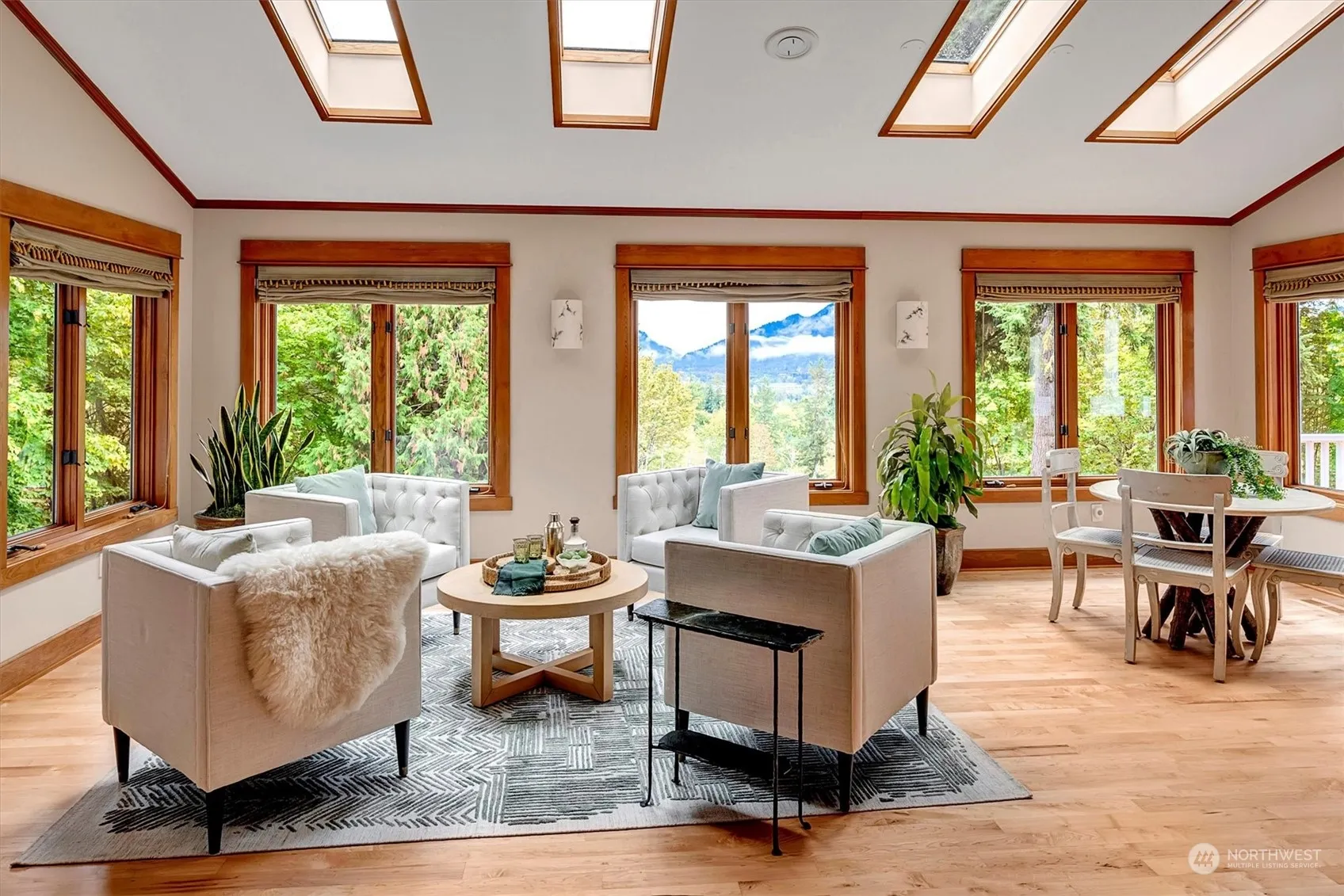 Tucked away in the heart of Sammamish is this well-appointed NW Contemporary home. As you enter the small gated community of 5 homes, you’ll notice the tranquility of the neighborhood. Mt Rainier views are captivating, framed perfectly by hills on either side. A high level of craftsmanship shows itself at every turn and is accompanied by top-of-the-line appliances and details including a 560 bottle wine cellar/tasting room, walk-through pantry room, and Gym. For those who love the outdoors all year long, enjoy the covered, heated outdoor areas. Automatic generator runs entire home. Situated on 5 park-like acres, you’ll find a treehouse built by Treehouse Master Pete Nelson, as well as a zipline for the adventurous! Don’t miss this one!