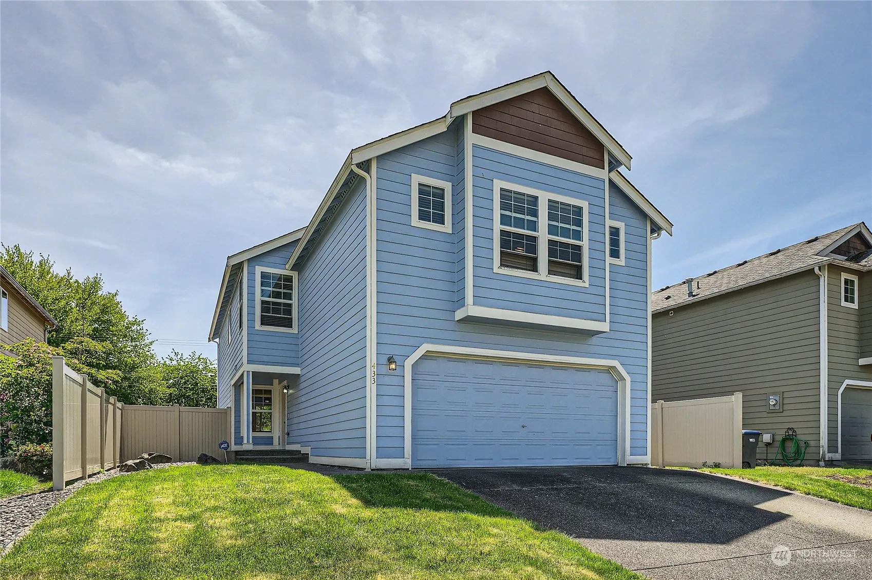 Move-in ready two-story home on a quiet dead-end street in charming small-town Algona. Great room living with open kitchen, living and dining rooms and durable LVP wood grain pattern flooring throughout the main level. Four bedrooms on upper level including the primary suite that features a private full bath and a walk-in closet with built in organizer plus a huge fourth bedroom that could be used as a bonus room and a convenient upstairs laundry room. Backyard is fully fenced with low maintenance vinyl fencing and has a patio and paved sidewalk down the side of the house. Great location offers easy commuting access to highways 167 and 18 and nearby shopping, restaurants, playground and trails.