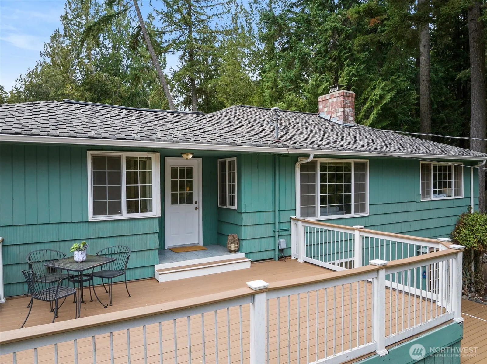 Experience one of the best values on Bainbridge Island. Beautifully maintained and full of charm, this home offers two complete living spaces just 10 minutes from Winslow and the ferry. Upstairs features three comfortable bedrooms and welcoming, light-filled gathering areas. Downstairs lives like its own private suite with a separate entrance, bedroom-sized flex space, full kitchen, and fireplace. With two fenced yards, distinct decks, and a spacious lawn, it’s ideal for multi-generational living, rental potential, or extended guest stays.