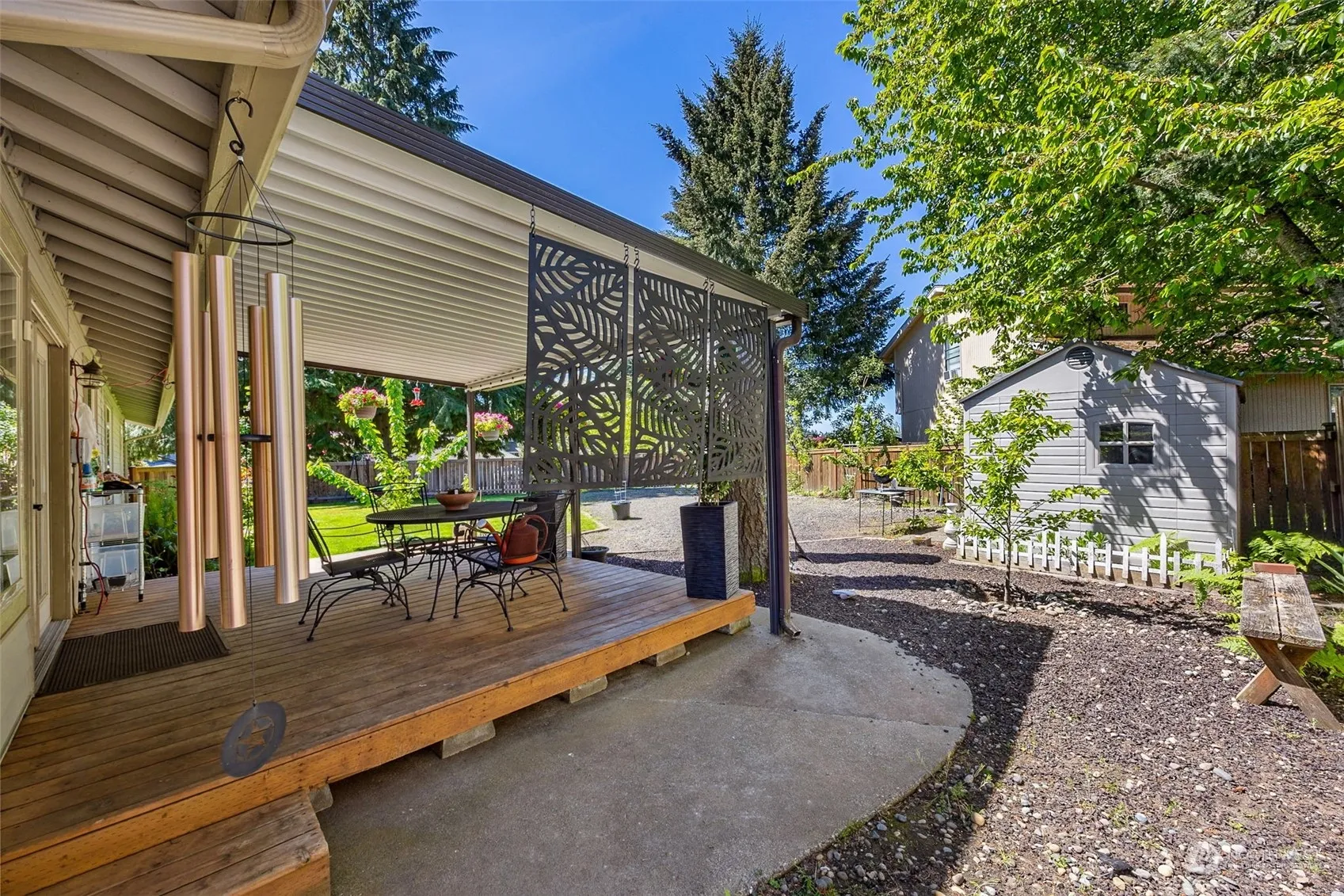 This charming single-level home boasts 1500 square feet of space, located within the sought-after Steilacoom school district and just a convenient 20-minute drive to JBLM. Recently updated, the interior features modern touches like durable LVT floors throughout. The heart of the home, the kitchen, is a chef’s dream with its commercial stove and elegant quartz countertops. Adjacent to the kitchen is a covered 12×18 deck, perfect for enjoying outdoor living and entertaining.Convenience is key with a dedicated washroom and mudroom, complete with built-in clothing organizer. Plus, you’ll appreciate the peace of mind provided by the newer furnace and hot water tank. The home is equipped with honeycomb blinds for both style and efficiency.