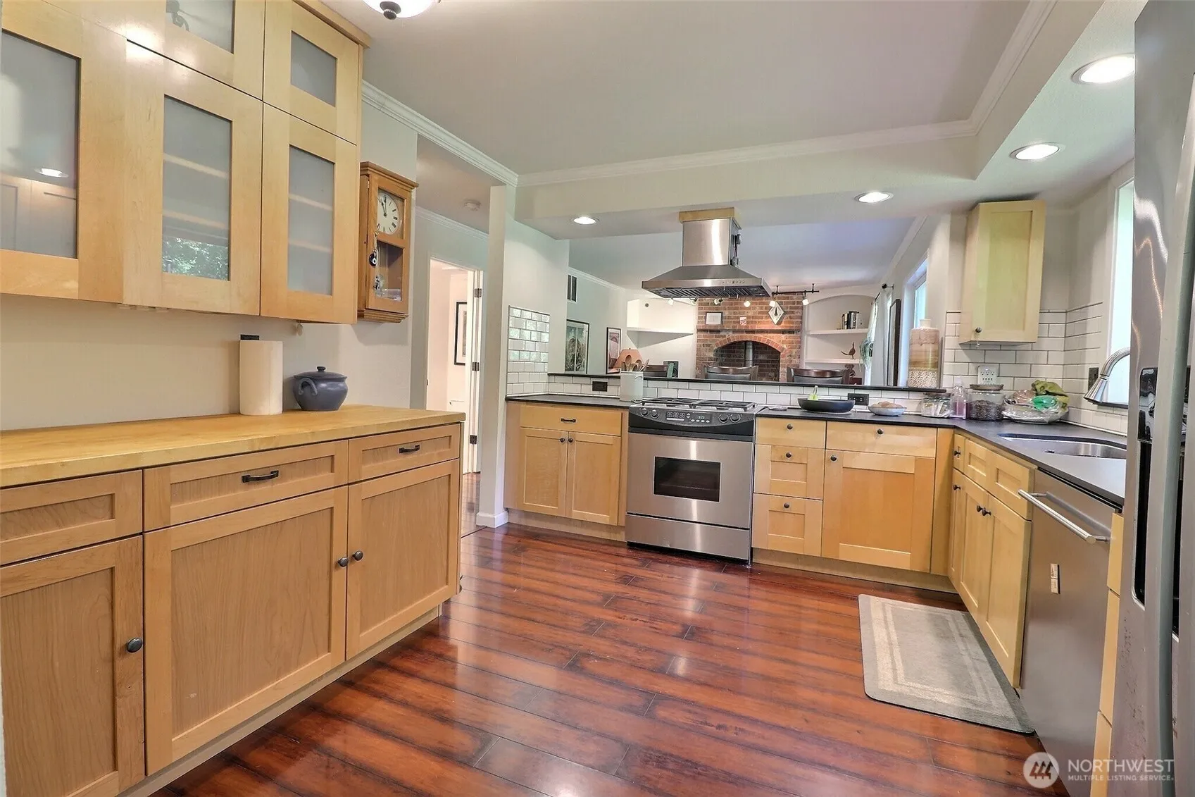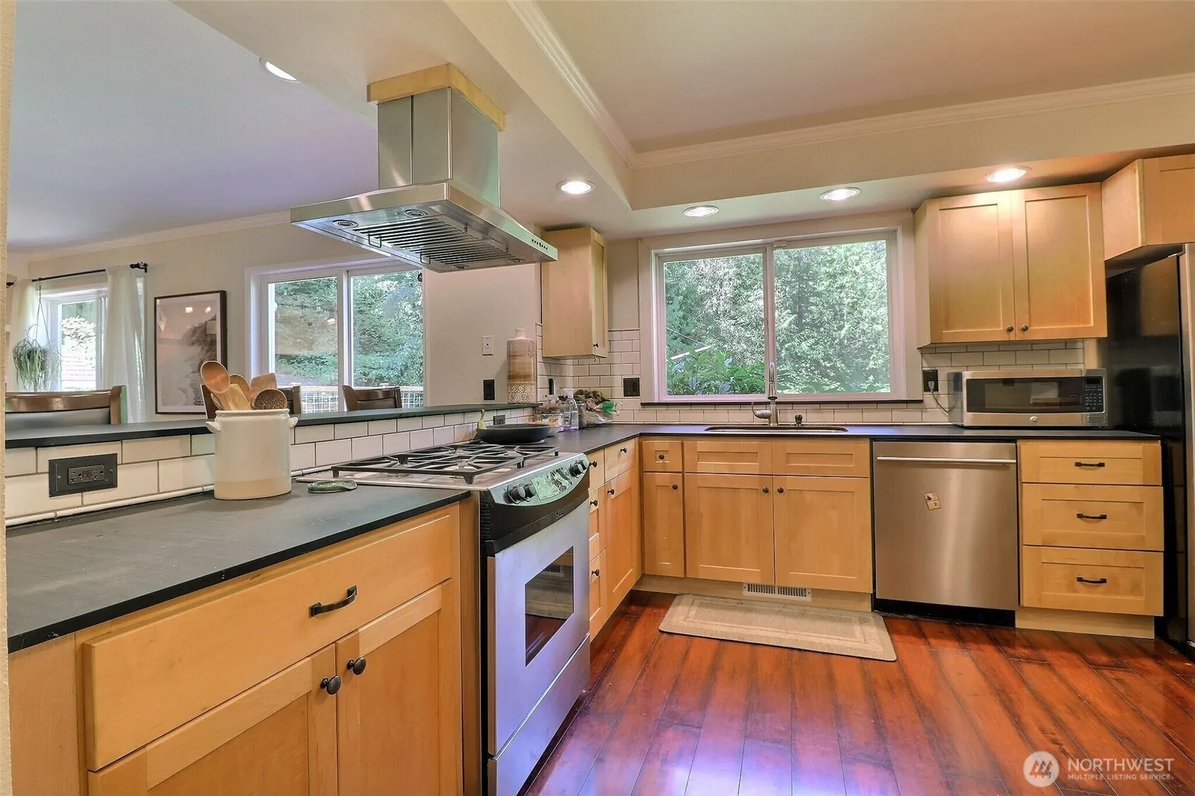 Just around the corner – yet a million miles away your reprieve begins at the headway of this serene 2+acre retreat. Settle in this classic 4bd 2.5bth 2 story offering elegant & inviting formal living & dining space, remodeled kitchen fit for todays most discerning baker, chef or preserver. Connected family rm w/custom built ins & gas fireplace. Upstairs the Primary offers king size living, walk in closets & spa bath. Convenient 2nd floor laundry, full bath & 3 more bedrooms present this homes well rounded utility. 500 sqft insulated shop w/wood fired heat is prime for all ways of hobbying. More to love outside – back deck overlooks secure raised gardens & sprawling parklike grounds. Just minutes to local dining, pleasant beach & ferry.