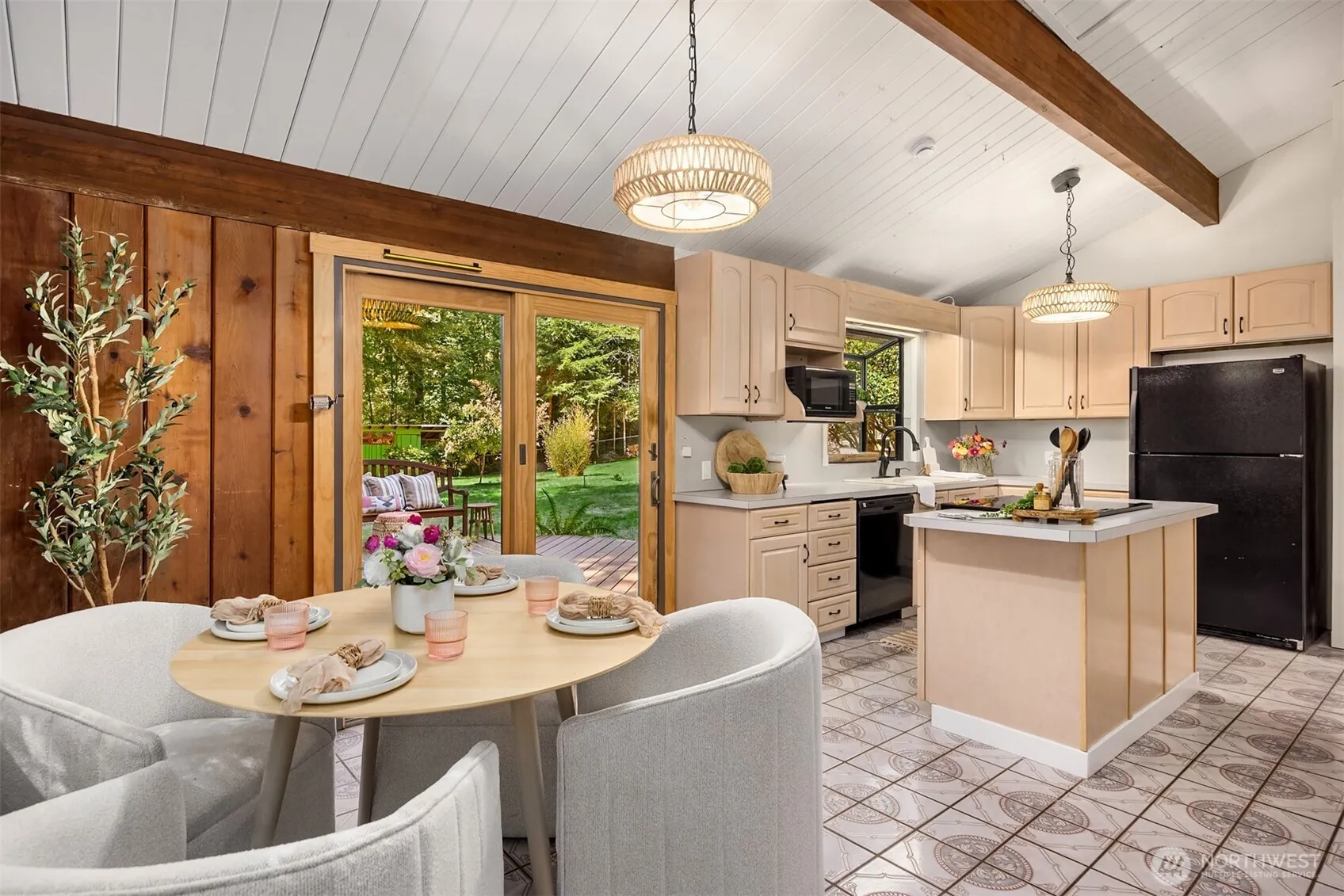 Tucked on a sunny private lot in the heart of Bainbridge’s Battle Point neighborhood, this one-of-a-kind cottage blends rustic charm with modern updates. Brick and wood details—including vaulted ceilings with exposed beams—bring warmth and character to the home’s single-level layout. The airy, open-concept living space centers around a stunning floor-to-ceiling fireplace. A bright bonus room with built-ins adds flexible space to play, work, or create. Outside, a sunny deck overlooks a fenced yard framed by mature trees. The real surprise? A light-filled detached shop—perfect for hobbies, creative pursuits, or future ADU potential. This special home has never been on the MLS and offers a rare chance to own in a prime island location.